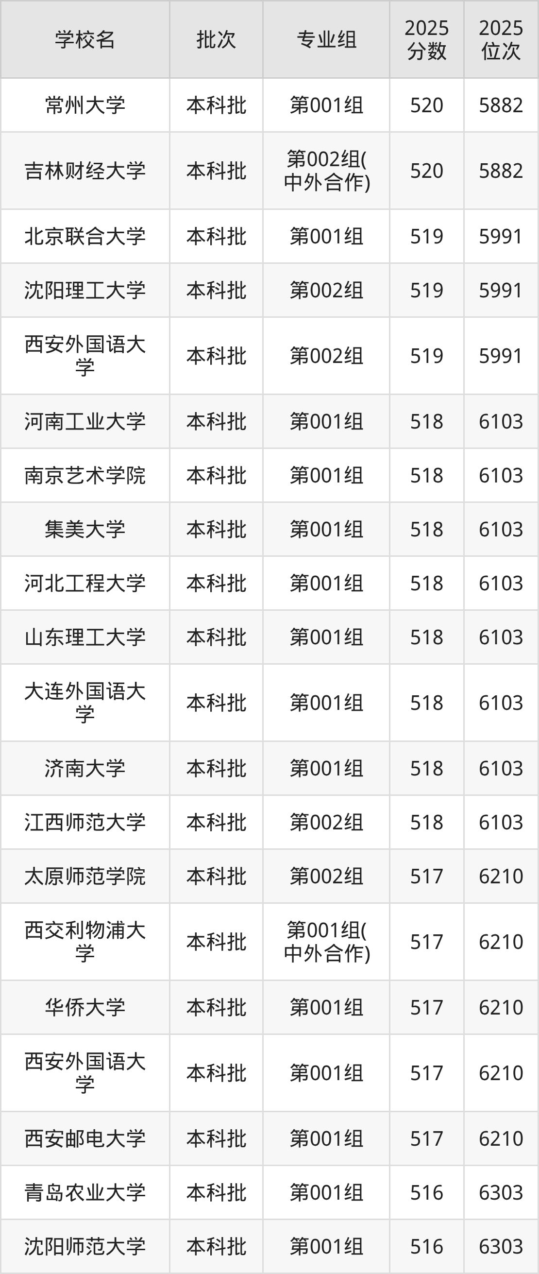 这些都是2026年高考历史类6304名~6400名考生可以报考的大学,更多学校名单如下表所示: