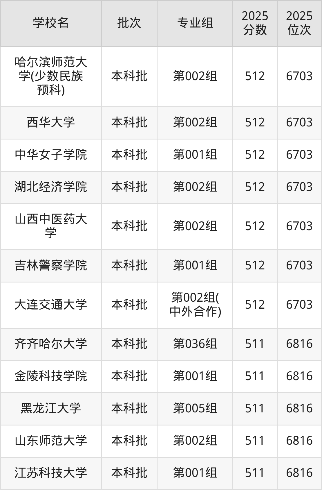 2025年黑龙江高考历史类515分(6304名~6400名)能上的大学有哈尔滨商业大学第001组、上海工程技术大学第001组、厦门理工学院第001组、山东石油化工学院第002组等。
