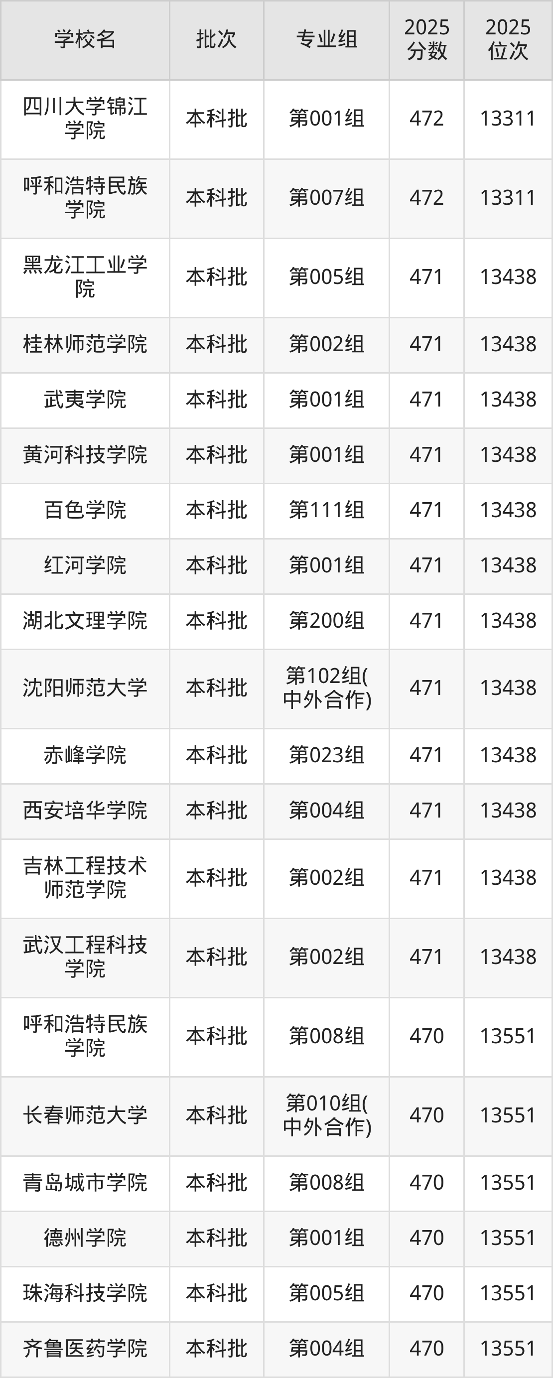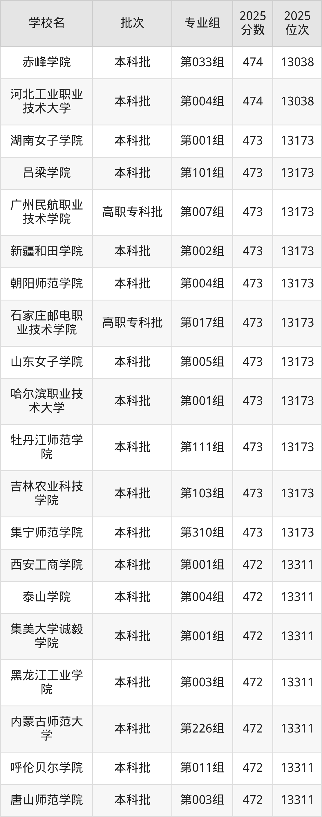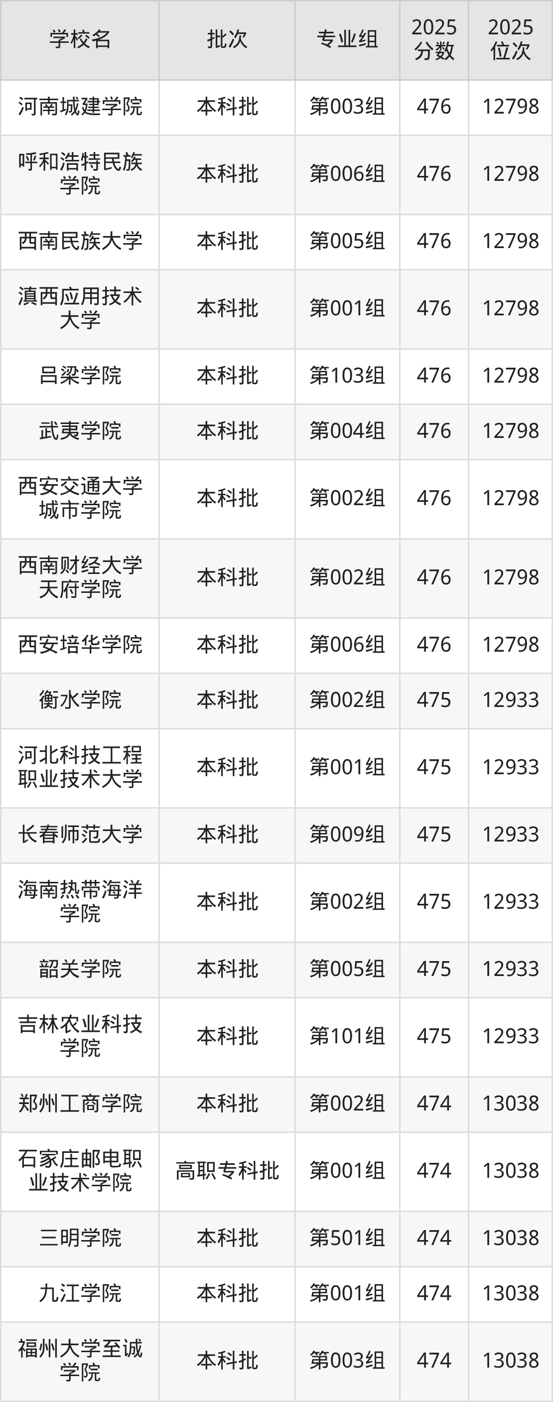 这些都是2026年高考历史类13039名~13173名考生可以报考的大学,更多学校名单如下表所示: