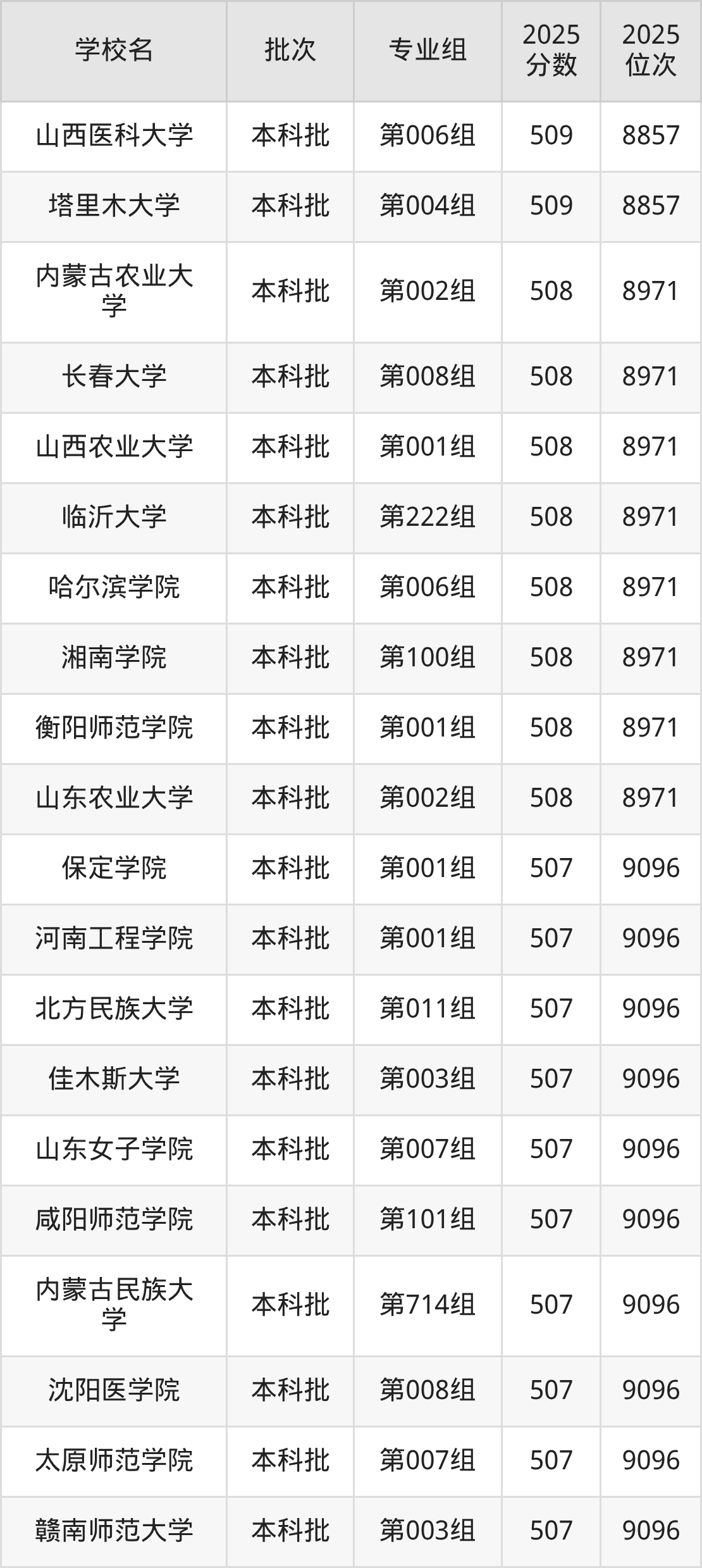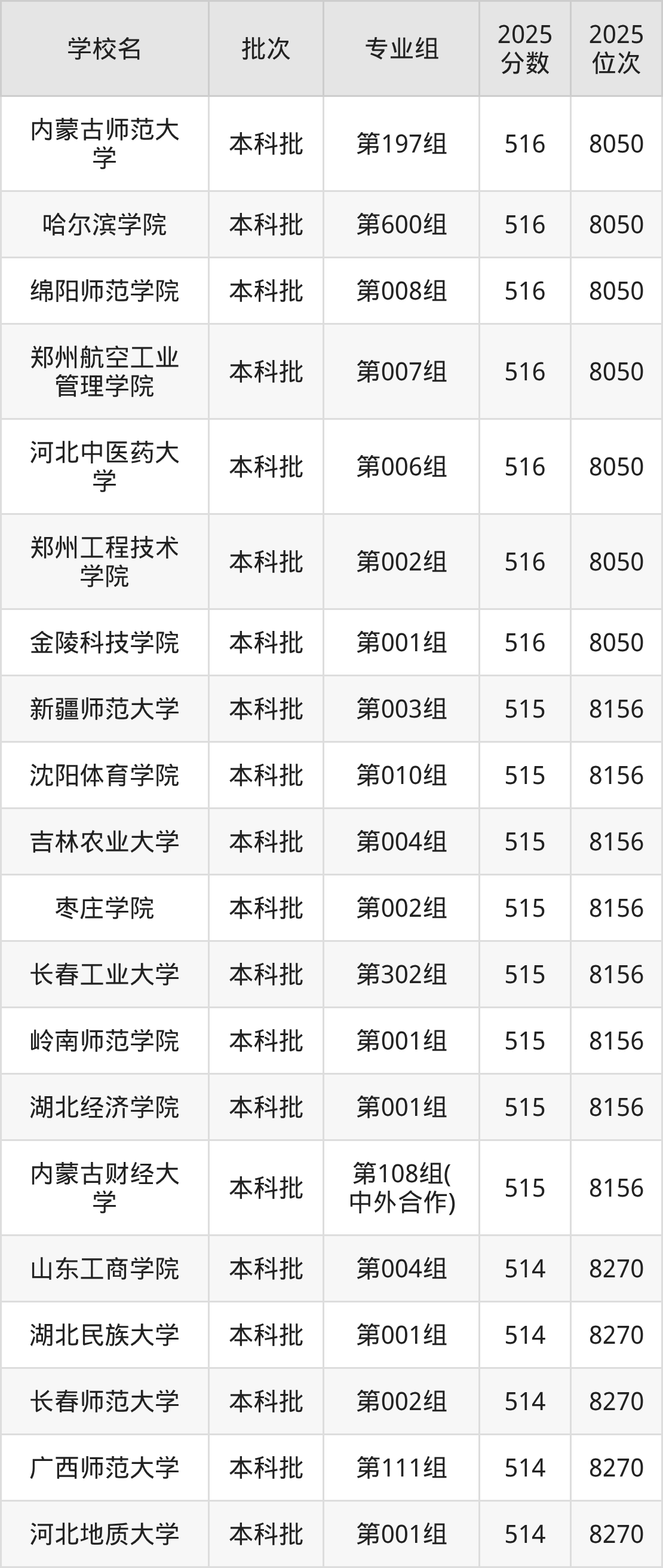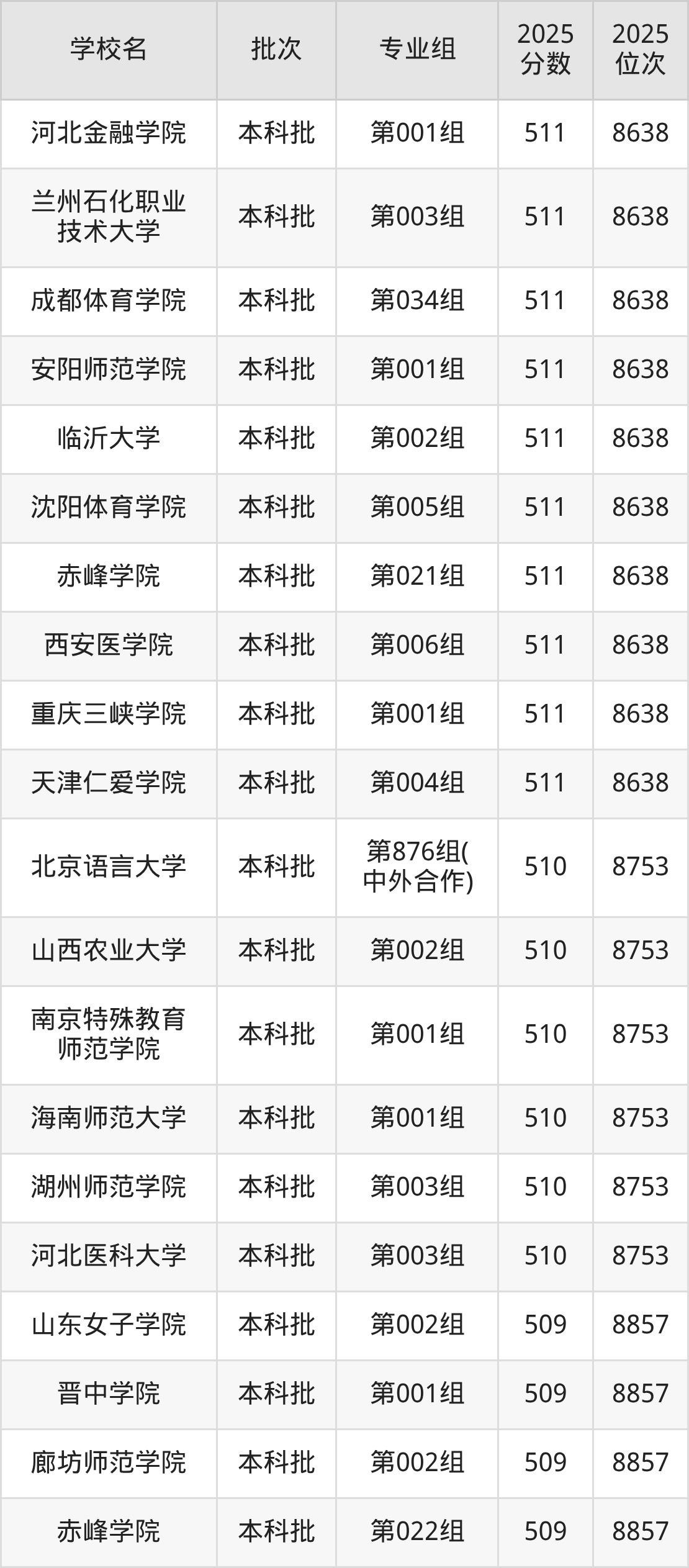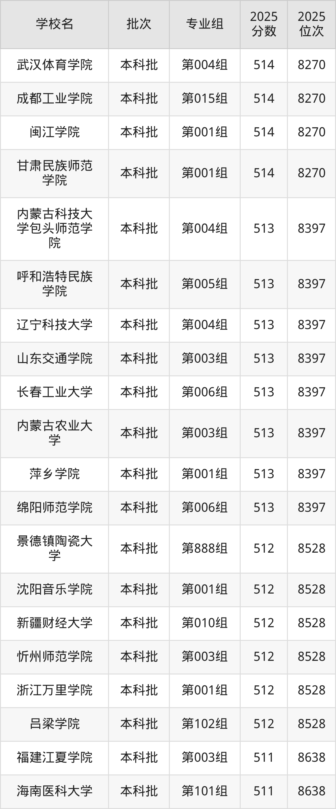 这些都是2026年高考历史类8529名~8638名考生可以报考的大学,更多学校名单如下表所示: