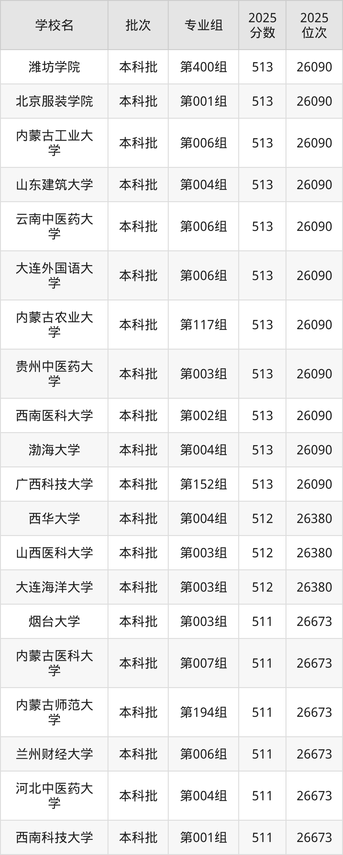 这些都是2026年高考物理类26381名~26673名考生可以报考的大学,更多学校名单如下表所示: