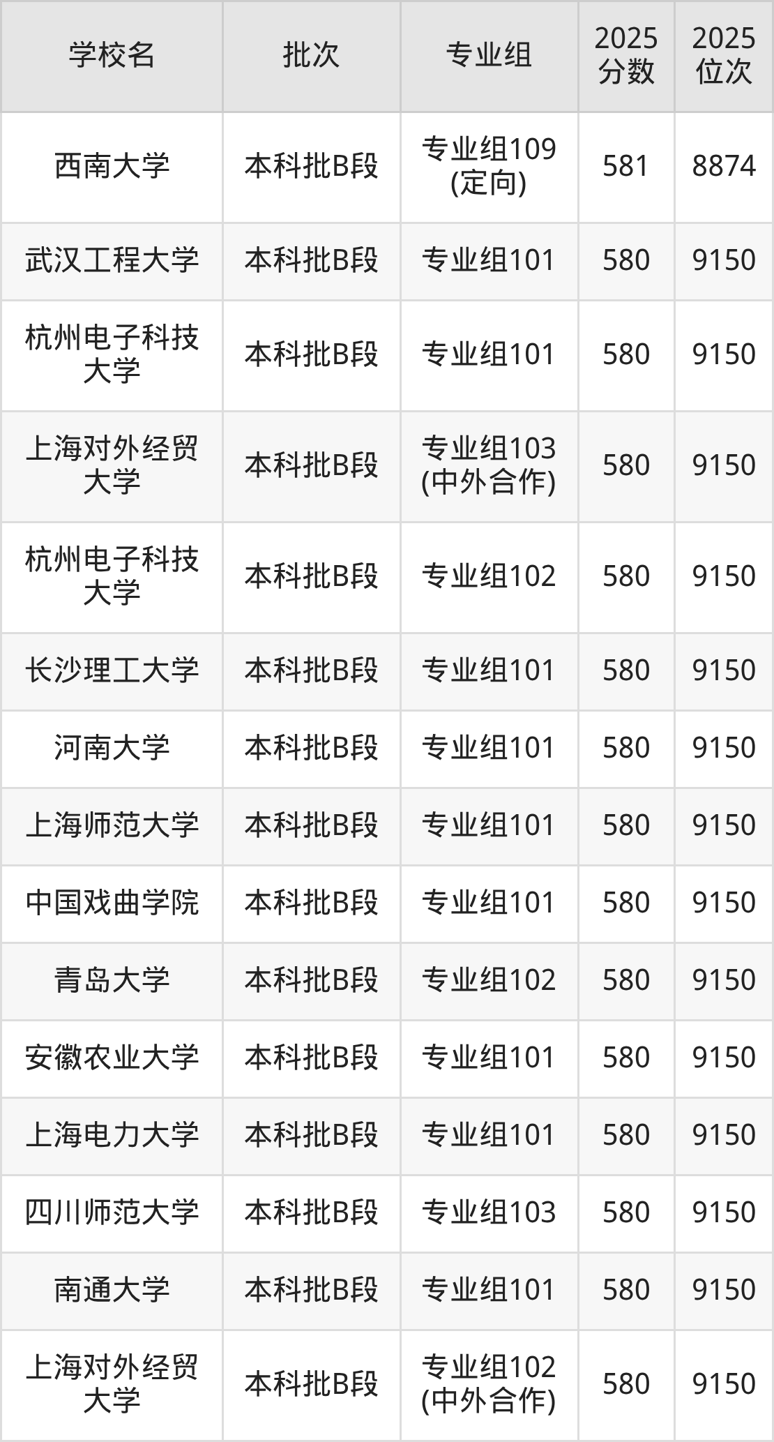 这些都是2026年高考历史类8604名~8874名考生可以报考的大学,更多学校名单如下表所示: