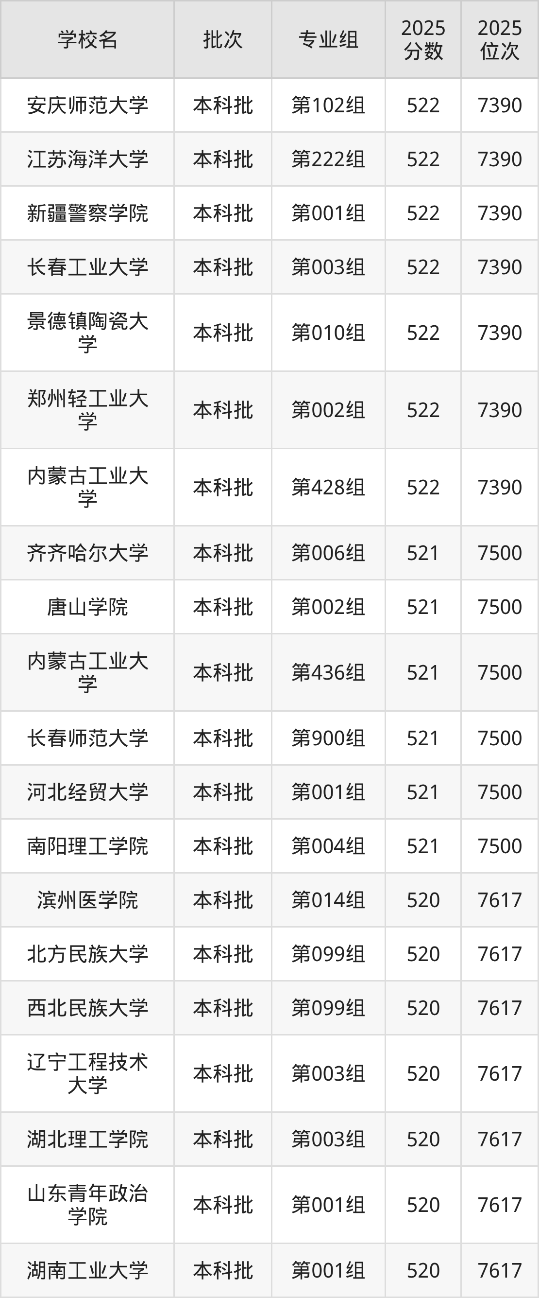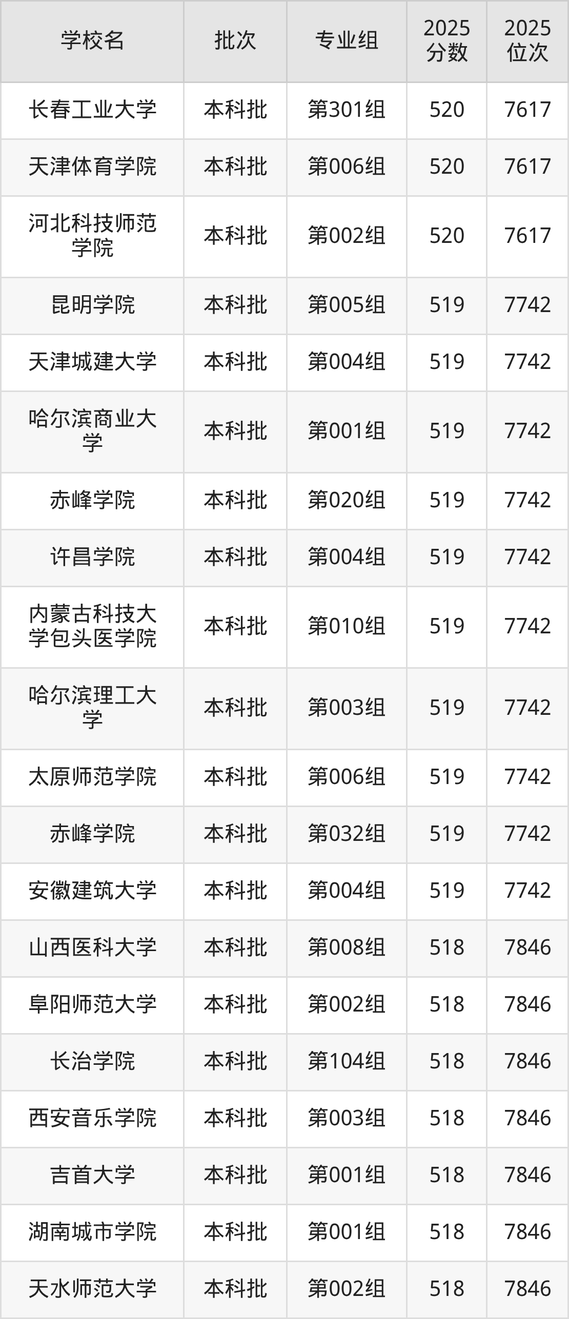 这些都是2026年高考历史类7847名~7930名考生可以报考的大学,更多学校名单如下表所示: