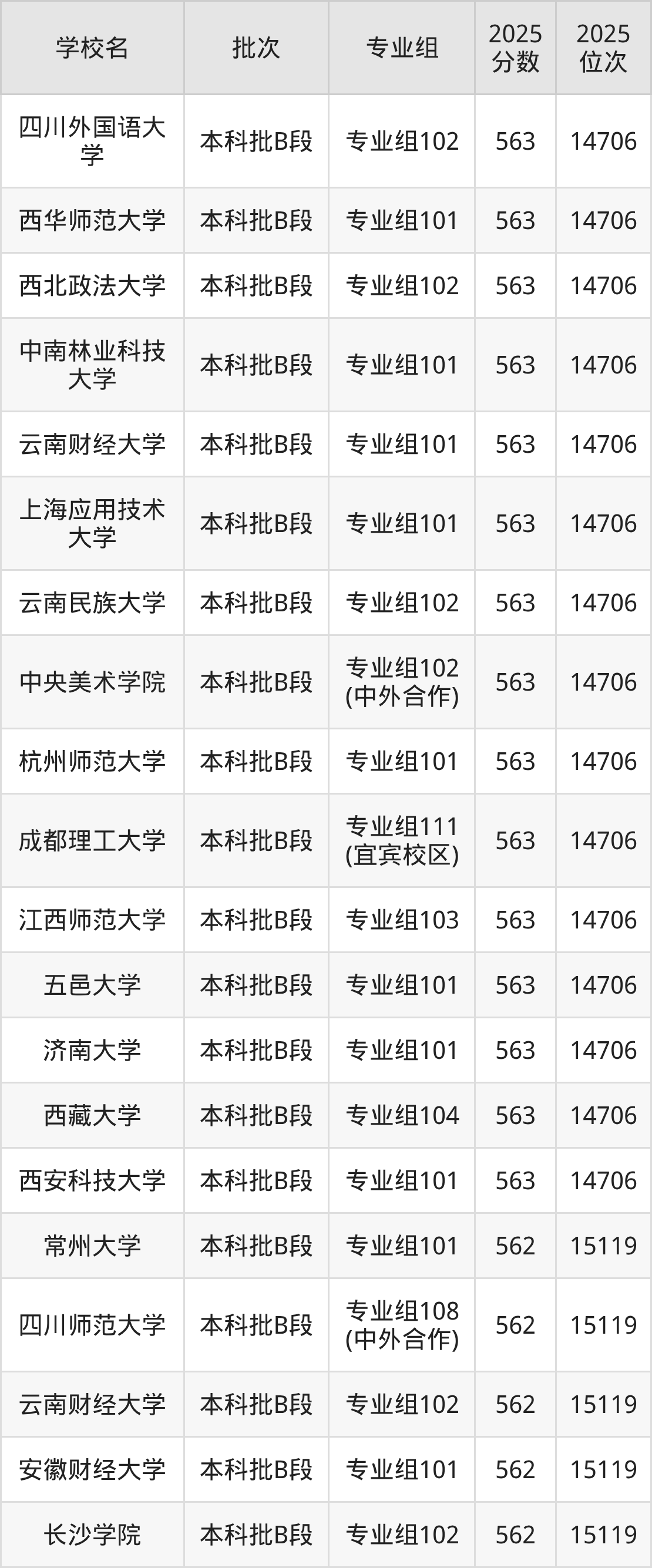 这些都是2026年高考历史类15120名~15499名考生可以报考的大学,更多学校名单如下表所示: