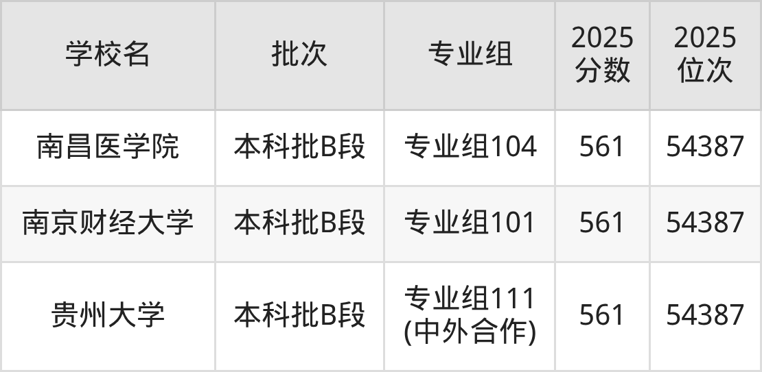 另外录取位次低于该区间(较稳妥)的有四川农业大学专业组103(55395名)、贵州医科大学专业组105(55395名)等;录取位次高于该区间(可冲)的有福建中医药大学专业组107(53398名)、上海对外经贸大学专业组102(中外合作)(53398名)等。