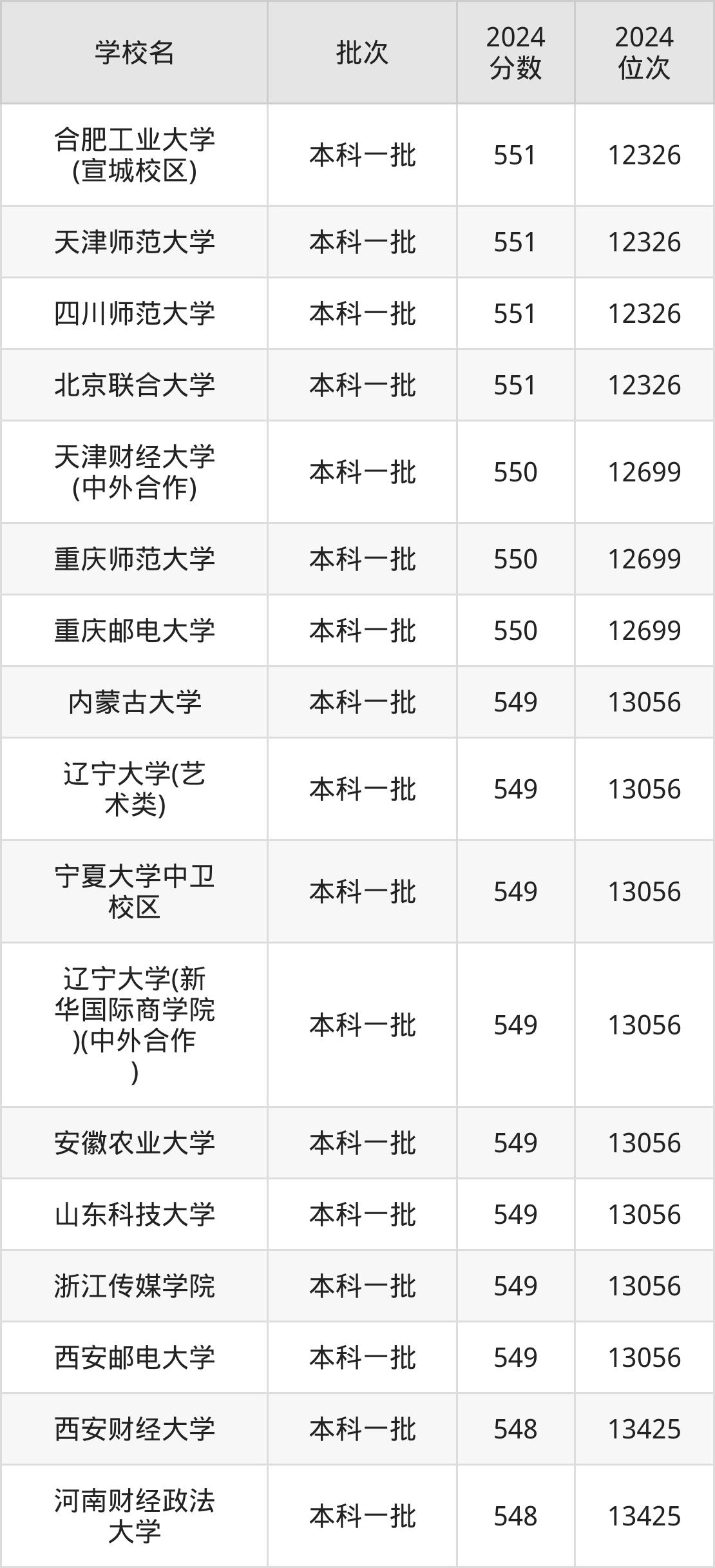 这些都是2025年高考文科12700名~13056名考生可以报考的大学,更多学校名单如下表所示: