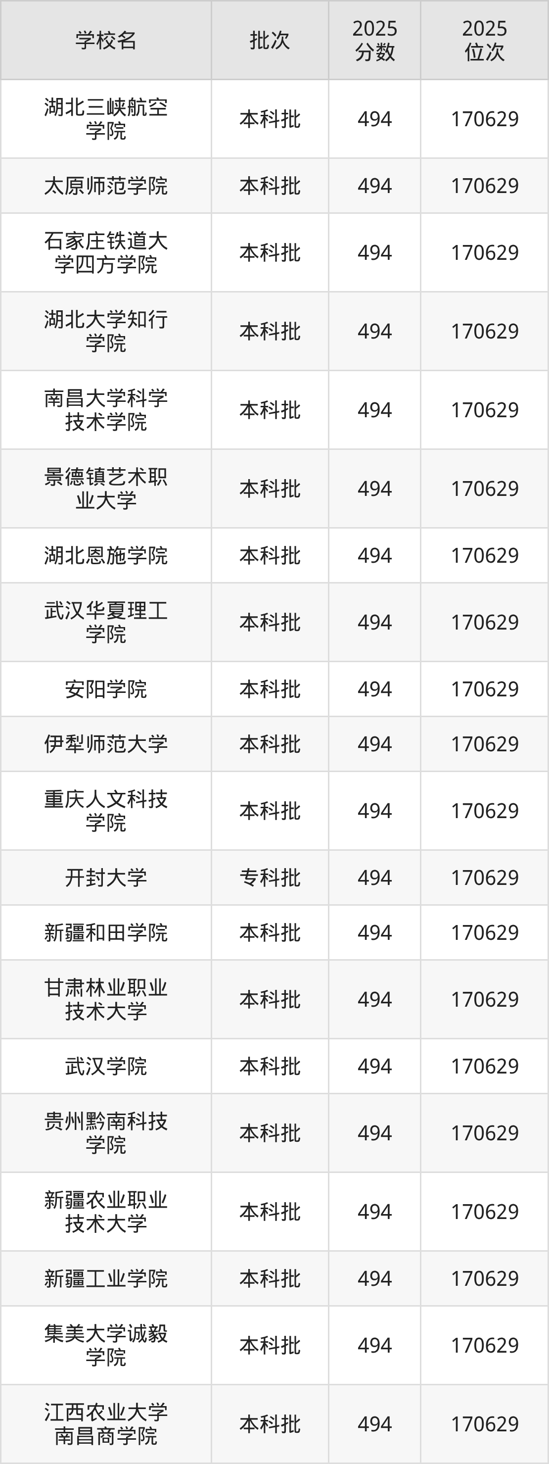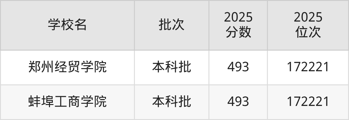 2025年河北高考物理类493分(170630名~172221名)能上的大学有江苏师范大学科文学院、蚌埠工商学院、郑州经贸学院、新疆理工学院等。