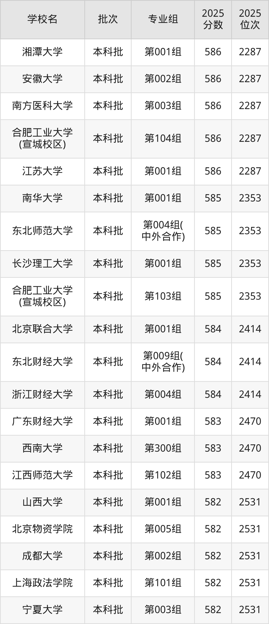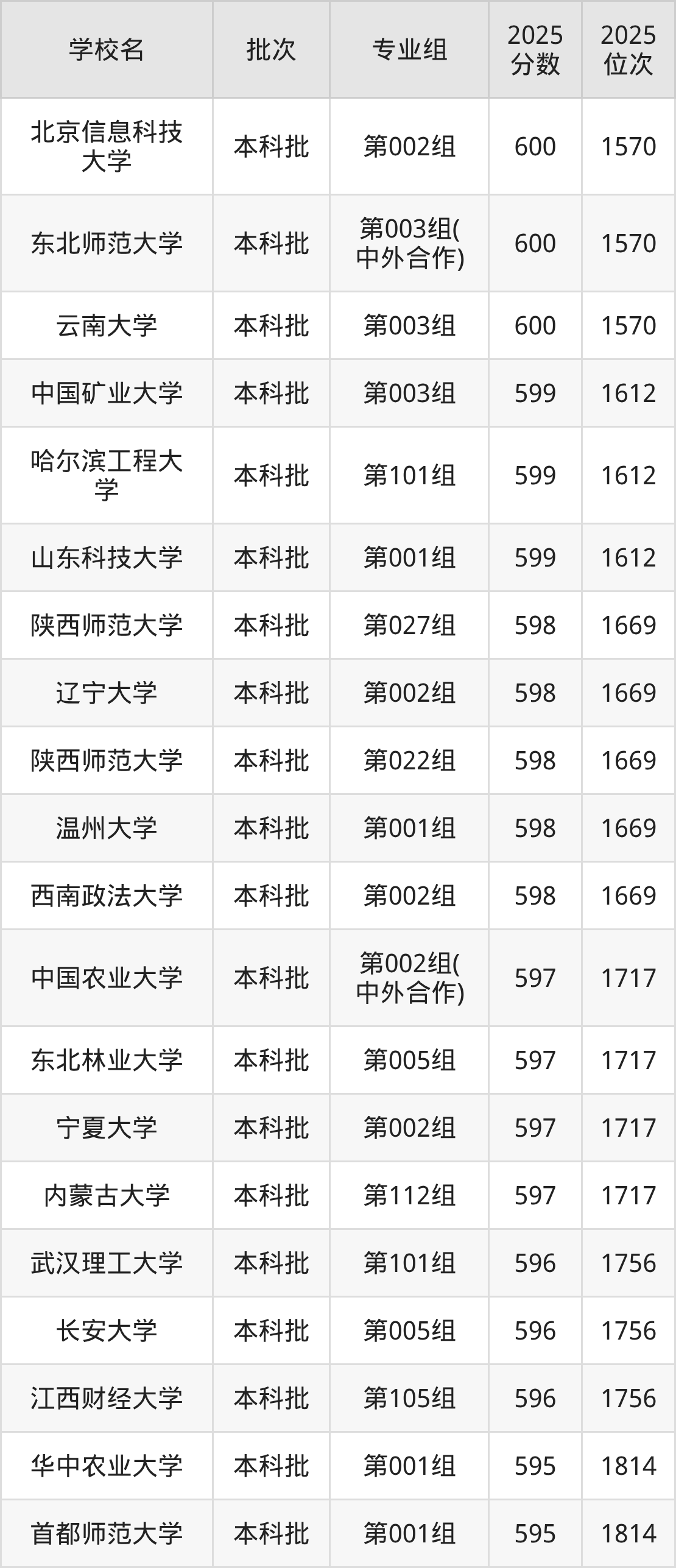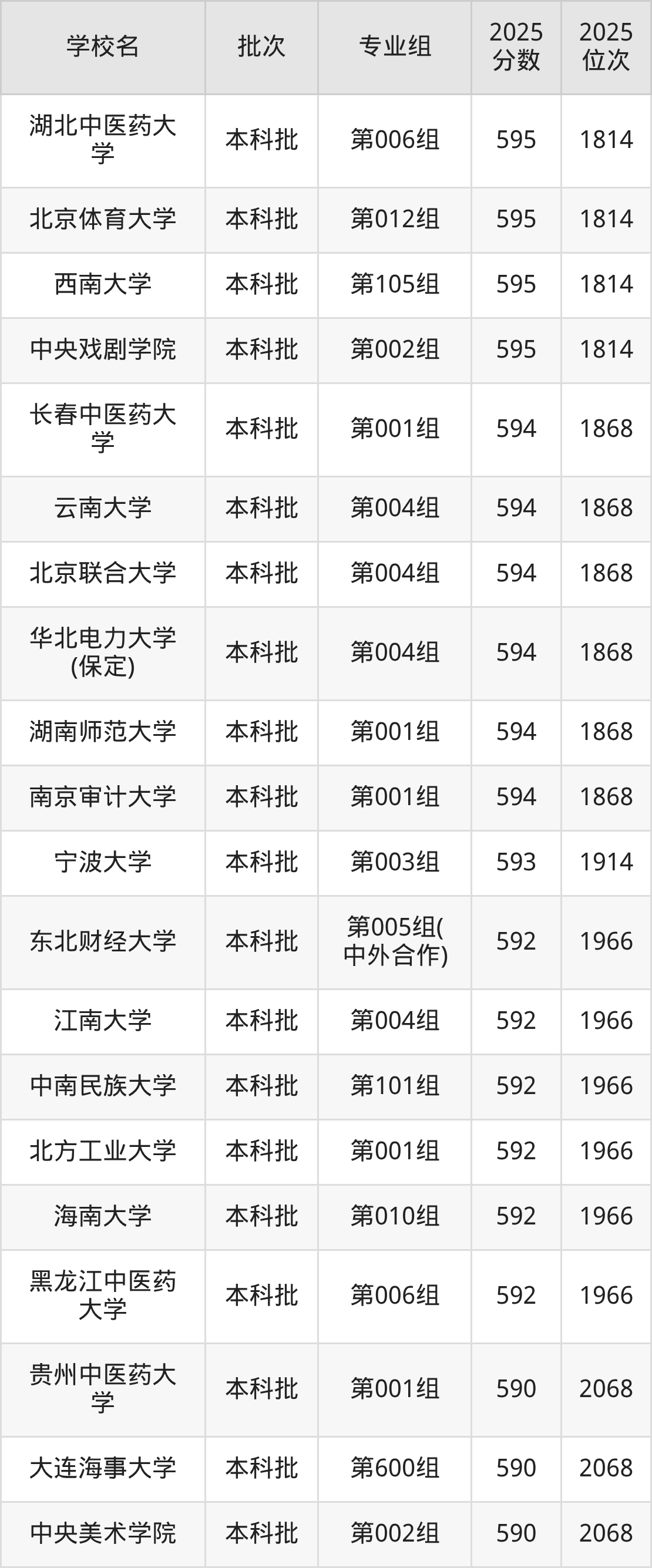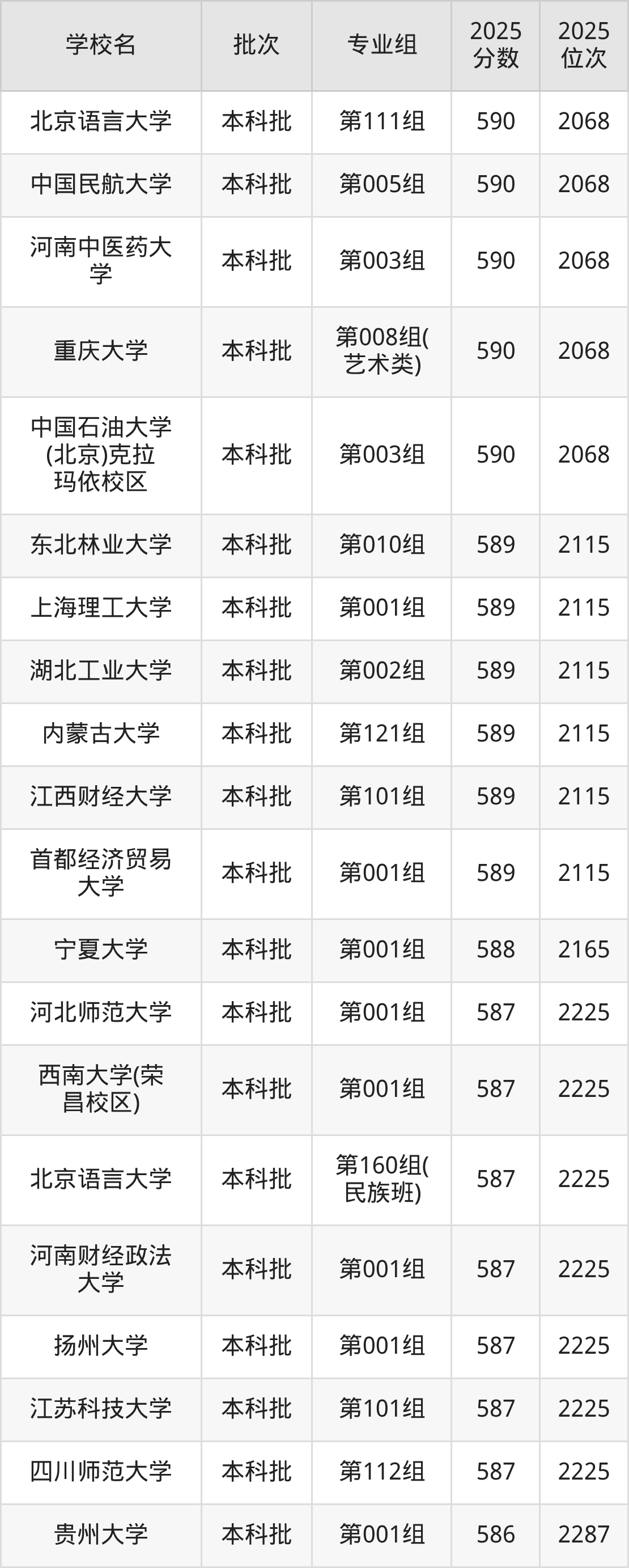 2025年内蒙古高考历史类589分(2069名~2115名)能上的大学有东北林业大学第010组、湖北工业大学第002组、内蒙古大学第121组、江西财经大学第101组等。