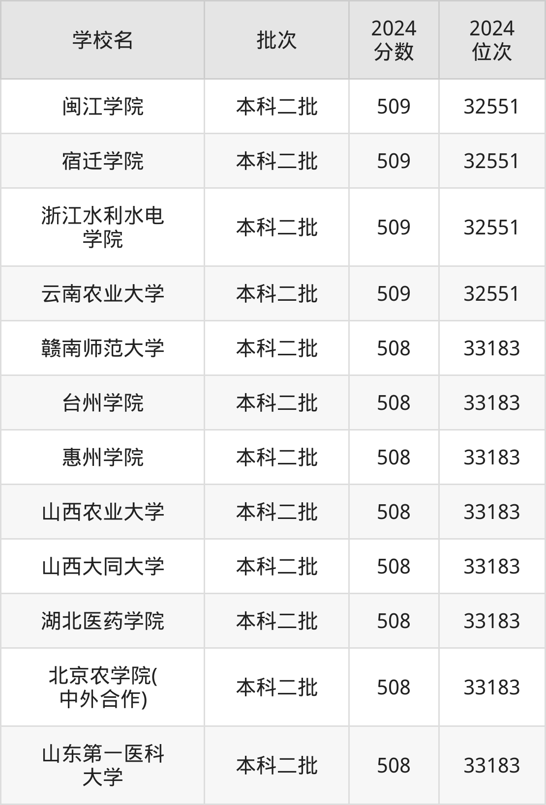 2024年河南高考文科508分(32552名~33183名)能上的大学有湖北医药学院、山西大同大学、山西农业大学、惠州学院等。
