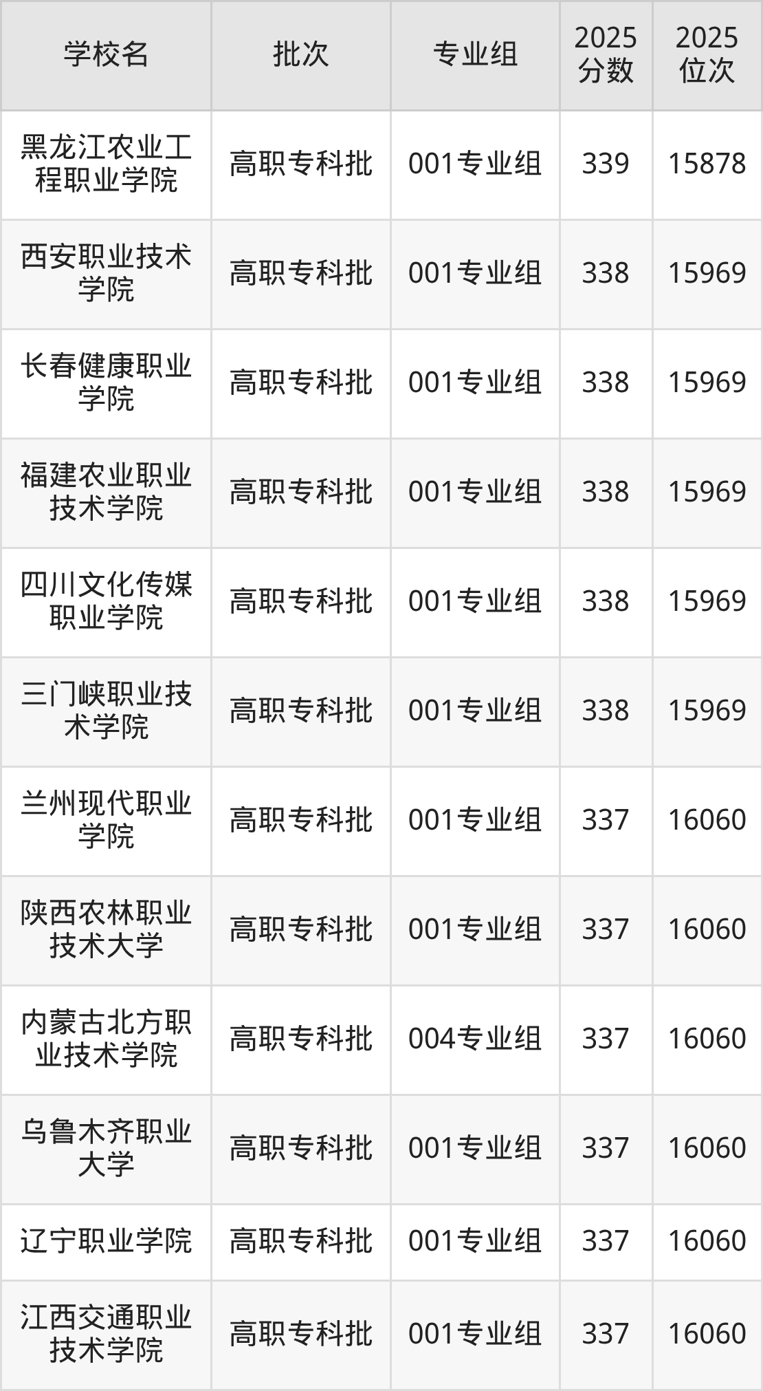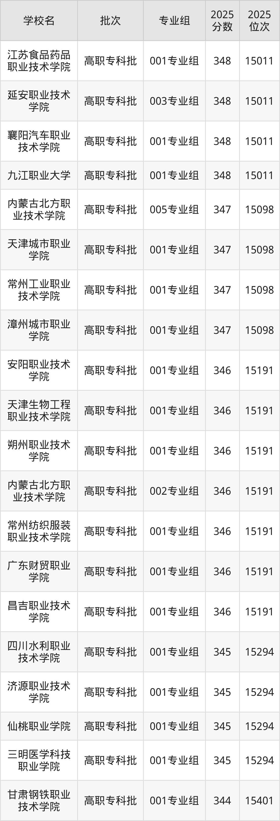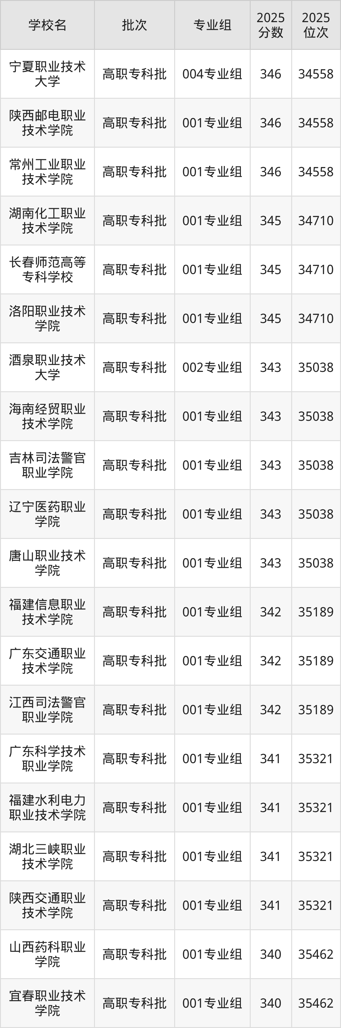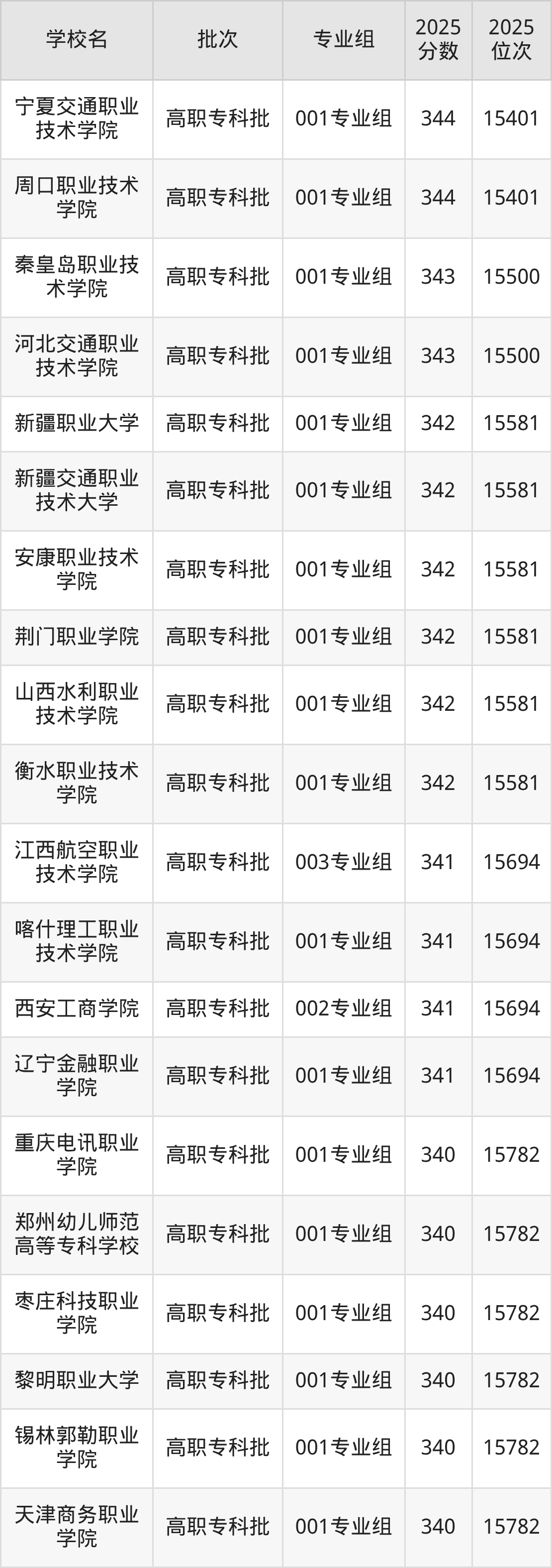2025年宁夏高考历史类342分(15501名~15581名)能上的大学有衡水职业技术学院001专业组、山西水利职业技术学院001专业组、荆门职业学院001专业组、安康职业技术学院001专业组等。