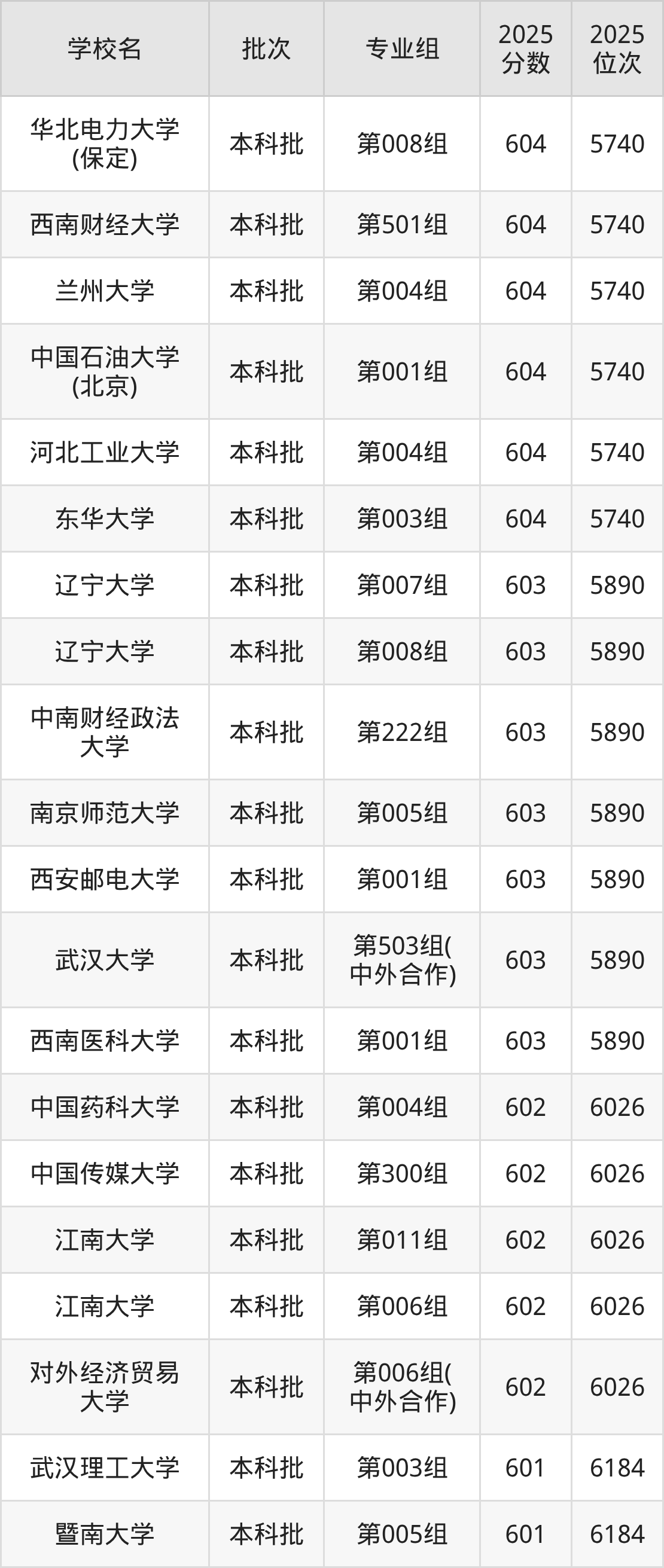 这些都是2026年高考物理类6185名~6349名考生可以报考的大学,更多学校名单如下表所示: