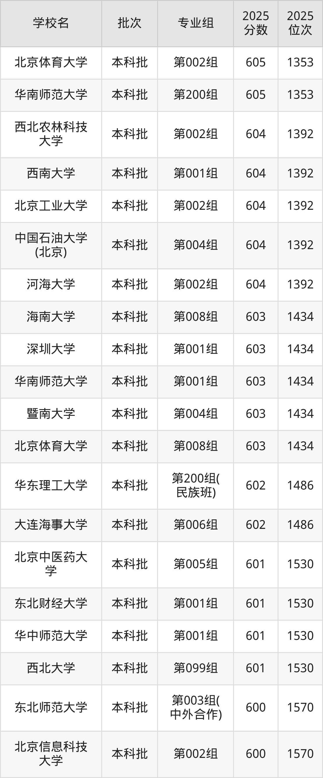 内蒙古高考600分:历史类排名1570位、物理类排名6349位。该分数位次对应能上的大学历史类有北京信息科技大学第002组、云南大学第003组;物理类有海南大学第014组、中国矿业大学(北京)第002组,更多名单如下文所示,2026届考生可参考。