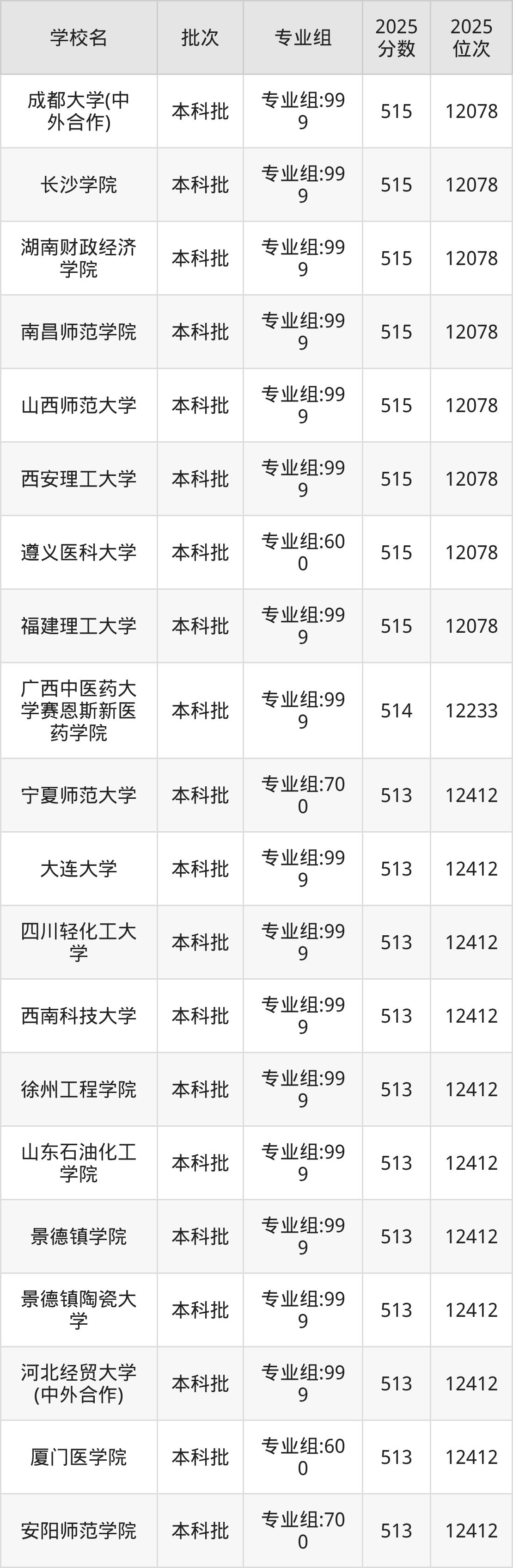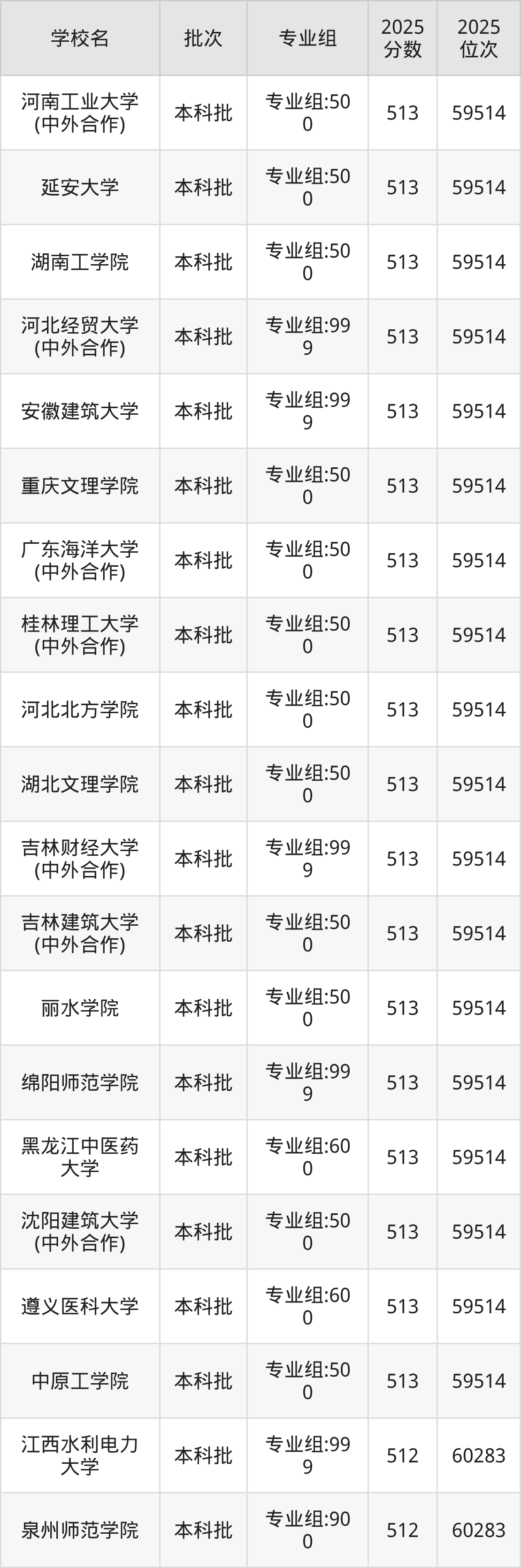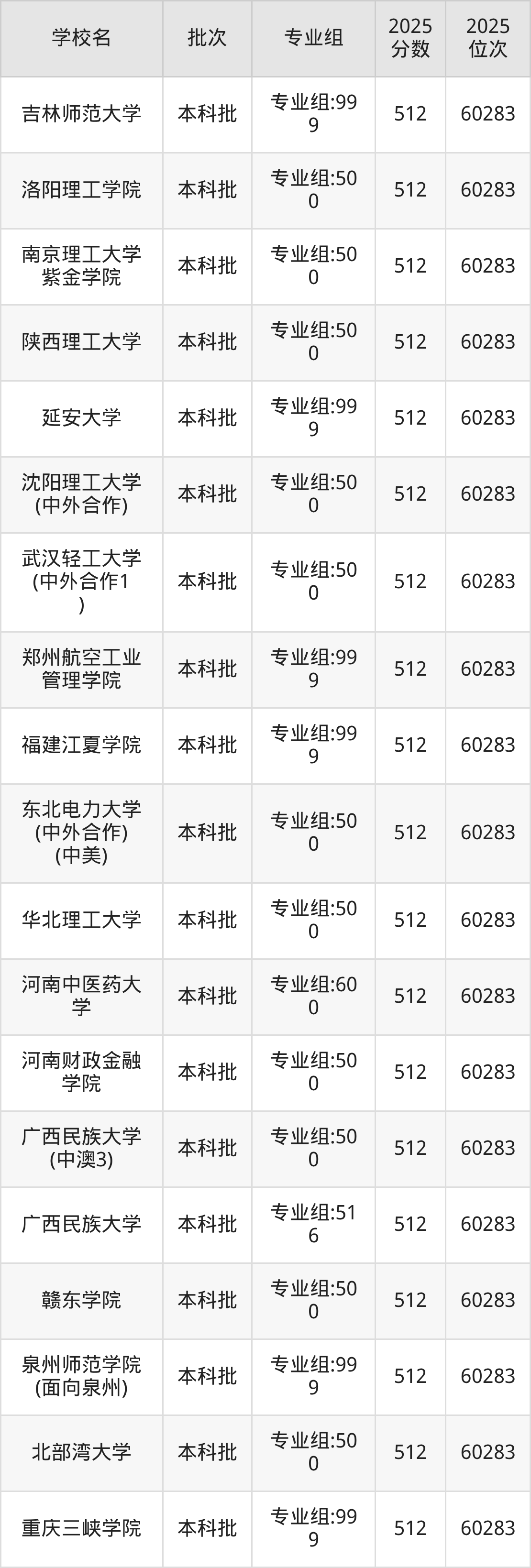 这些都是2026年高考物理类59515名~60283名考生可以报考的大学,更多学校名单如下表所示: