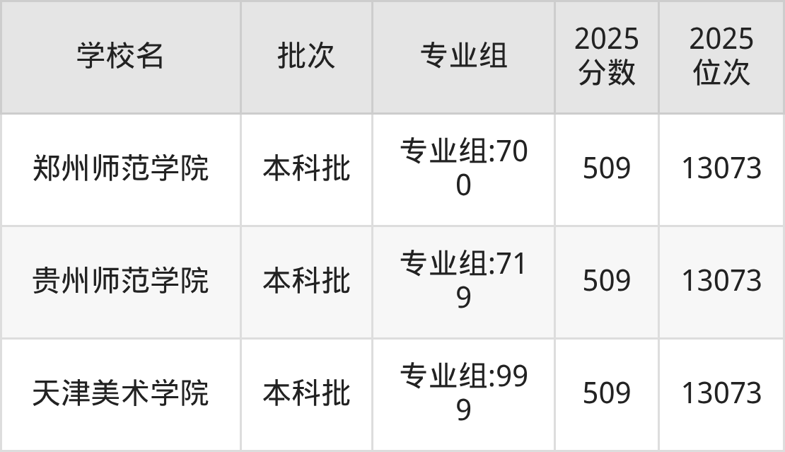 这些都是2026年高考历史类12413名~12576名考生可以报考的大学,更多学校名单如下表所示: