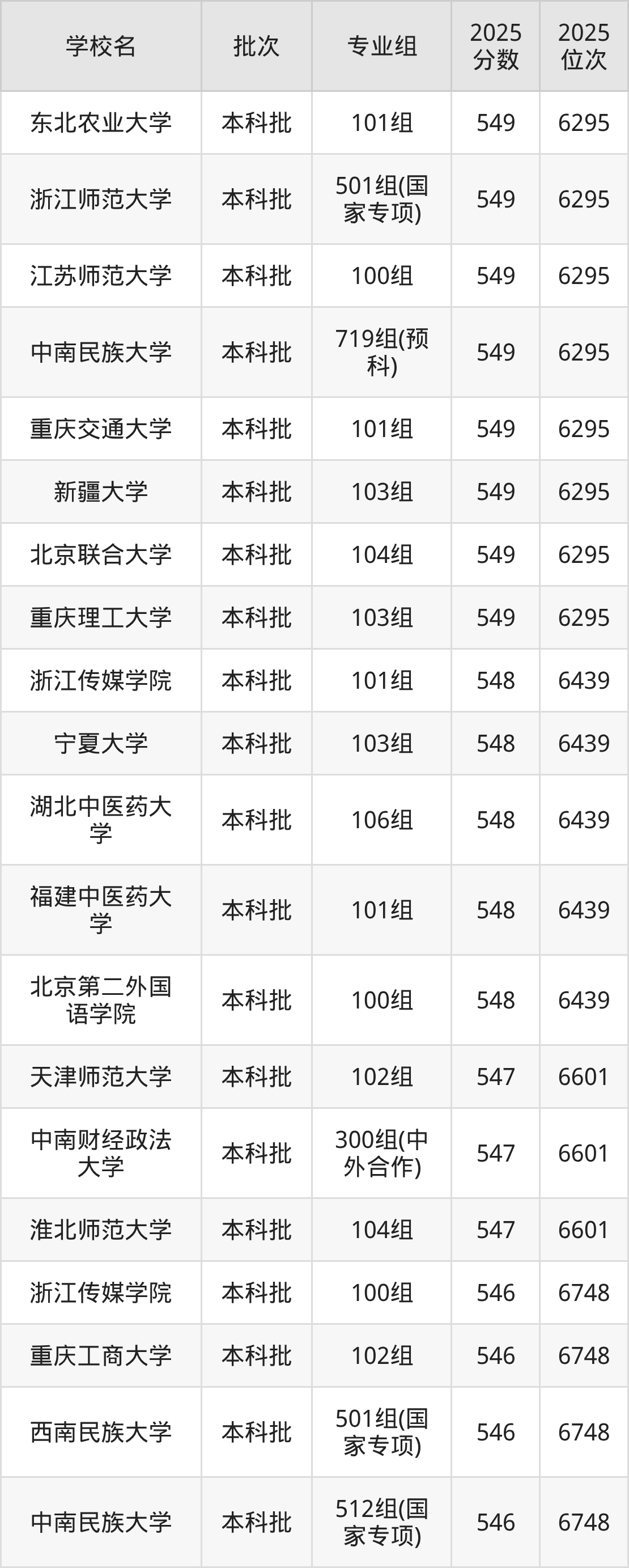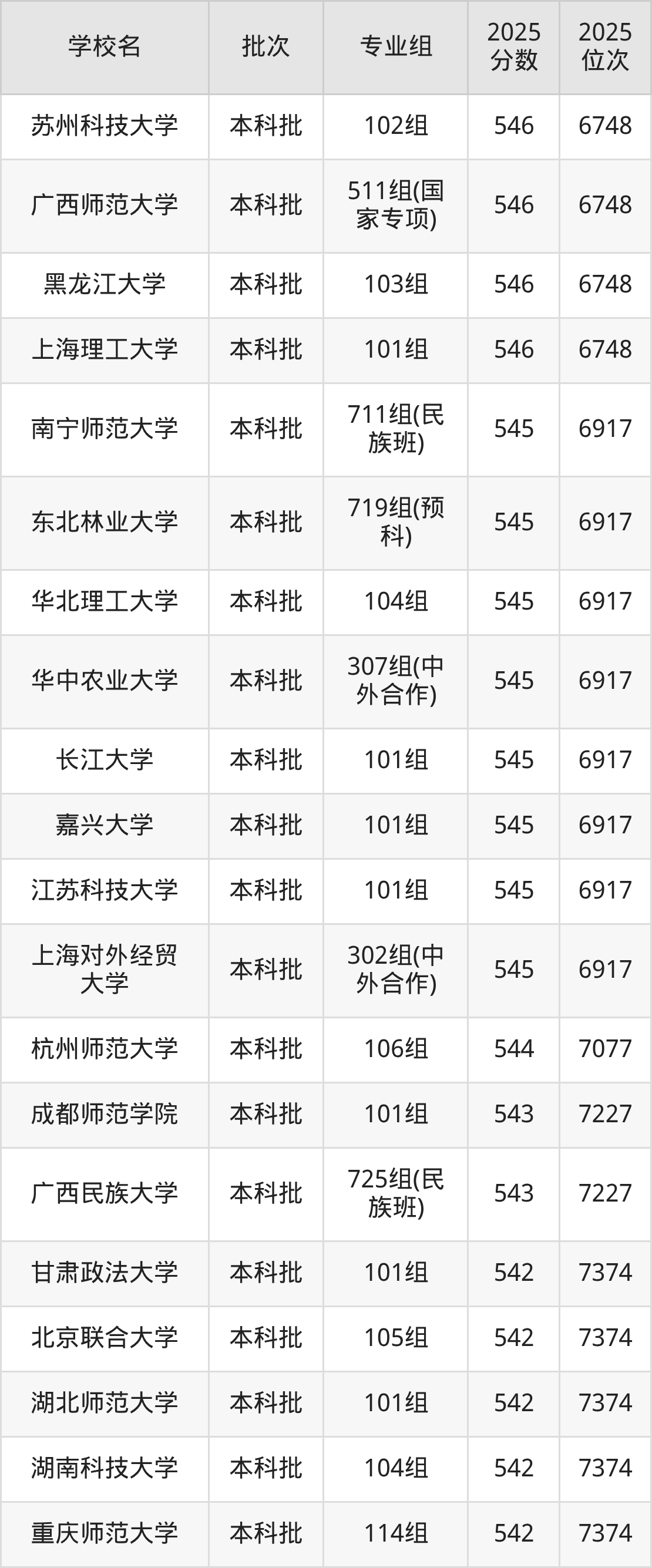 2025年广西高考历史类545分(6749名~6917名)能上的大学有华北理工大学104组、东北林业大学719组(预科)、上海对外经贸大学302组(中外合作)、江苏科技大学101组等。