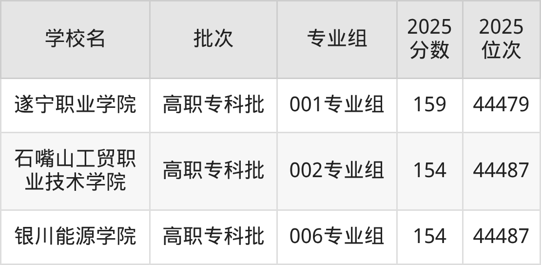 2025年宁夏高考历史类232分(21121名~21129名)能上的大学有江西软件职业技术大学001专业组。