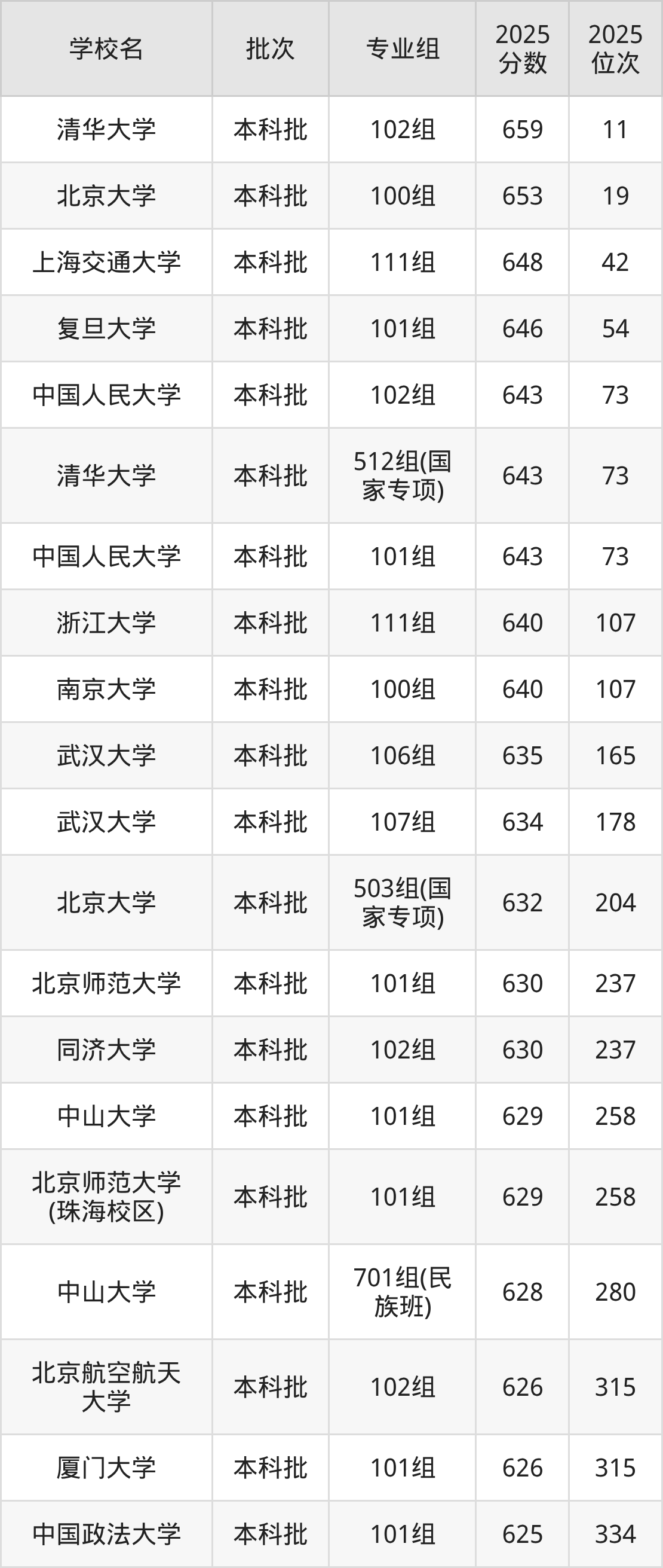 由于高考录取分数线历年波动较大,因此本文以该分数对应的位次排名为大家整理能上的大学名单。