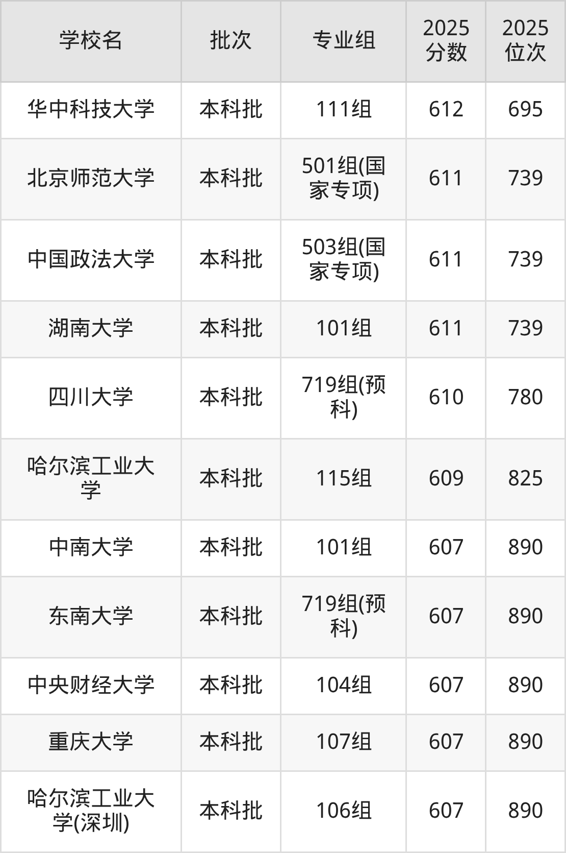这些都是2026年高考物理类2464名~2577名考生可以报考的大学,更多学校名单如下表所示: