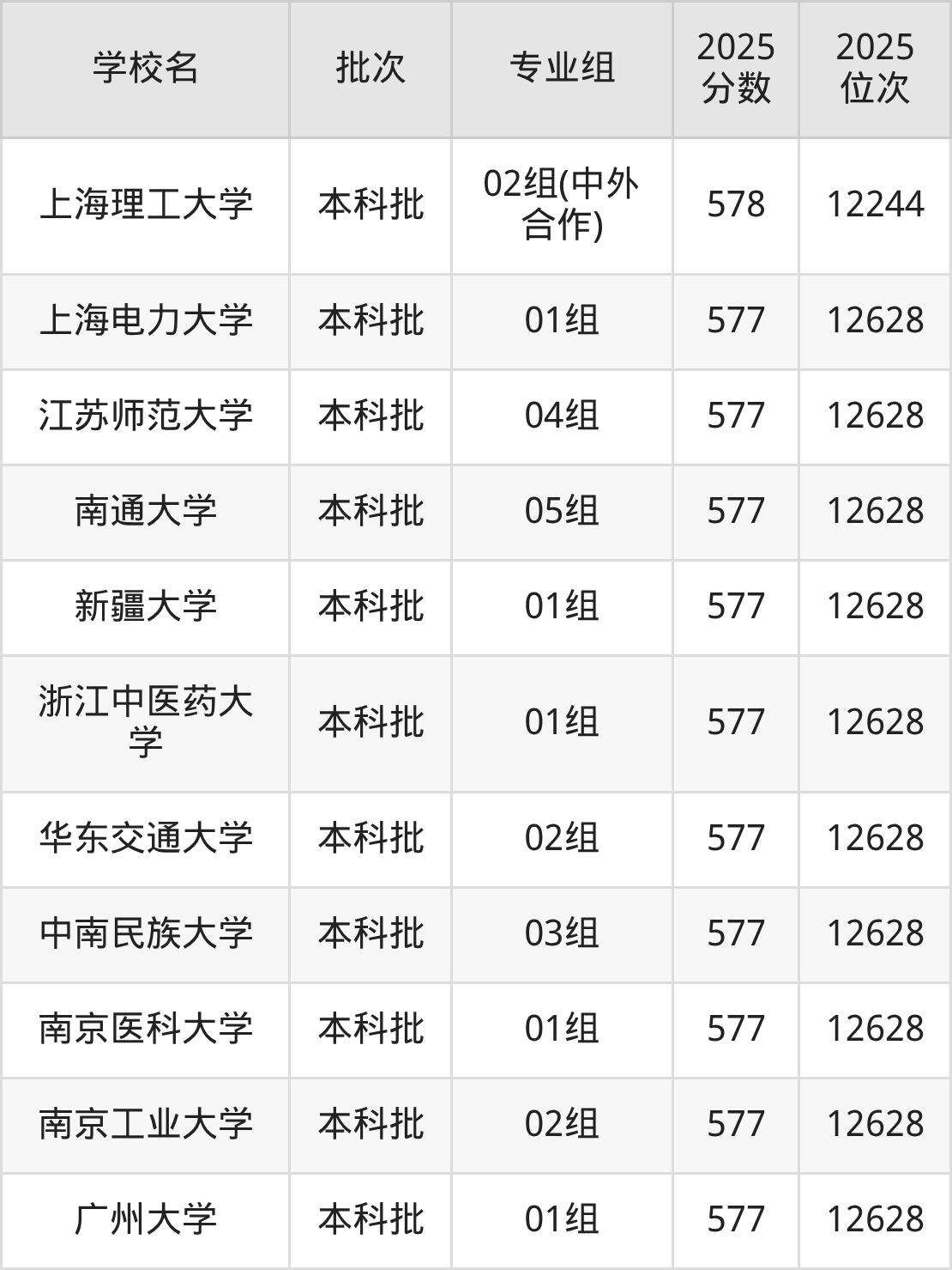 2025年江苏高考历史类578分(11881名~12244名)能上的大学有上海理工大学02组(中外合作)、浙江理工大学01组、安徽医科大学01组、山西中医药大学01组等。