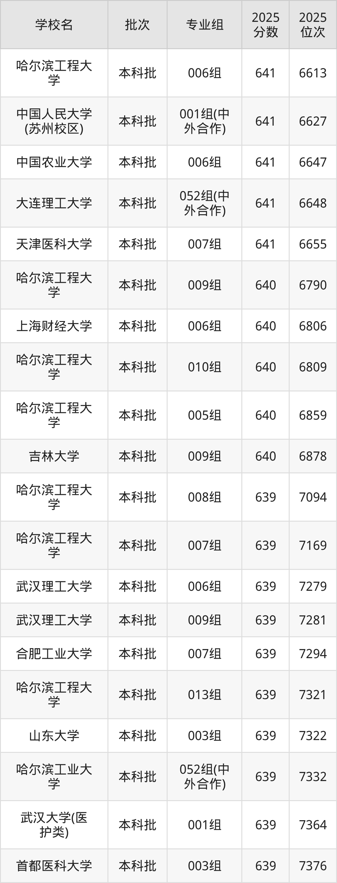 2025年安徽高考物理类639分(7028名~7382名)能上的大学有哈尔滨工程大学007组、哈尔滨工程大学008组、哈尔滨工程大学013组、哈尔滨工业大学052组(中外合作)等。
