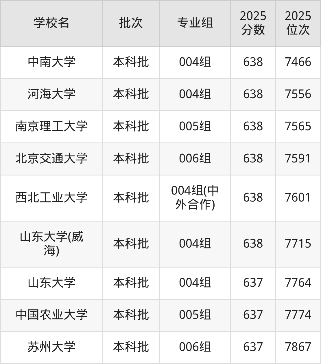 另外录取位次低于该区间(较稳妥)的有中南大学004组(7466名)、河海大学004组(7556名)等;录取位次高于该区间(可冲)的有吉林大学009组(6878名)、哈尔滨工程大学005组(6859名)等。