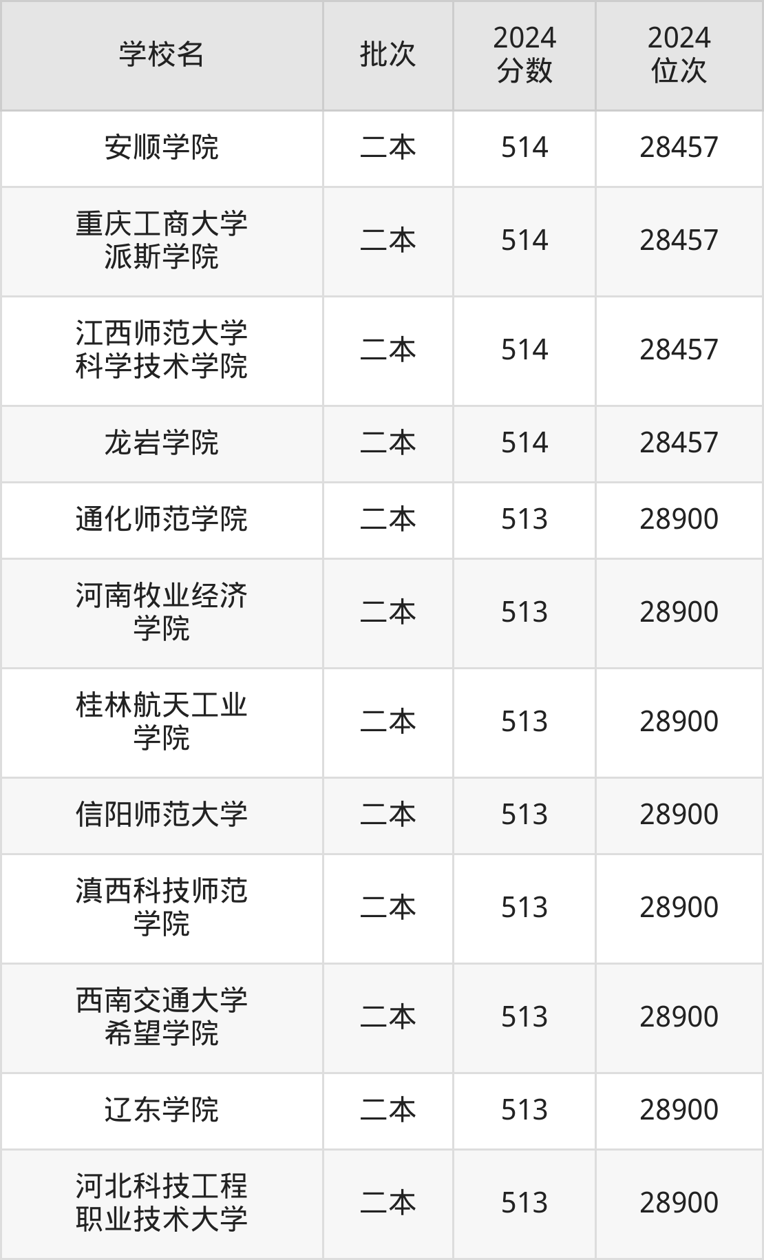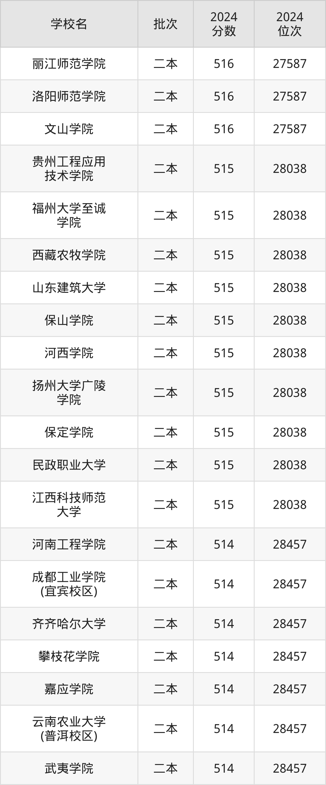 这些都是2025年高考文科28039名~28457名考生可以报考的大学,更多学校名单如下表所示: