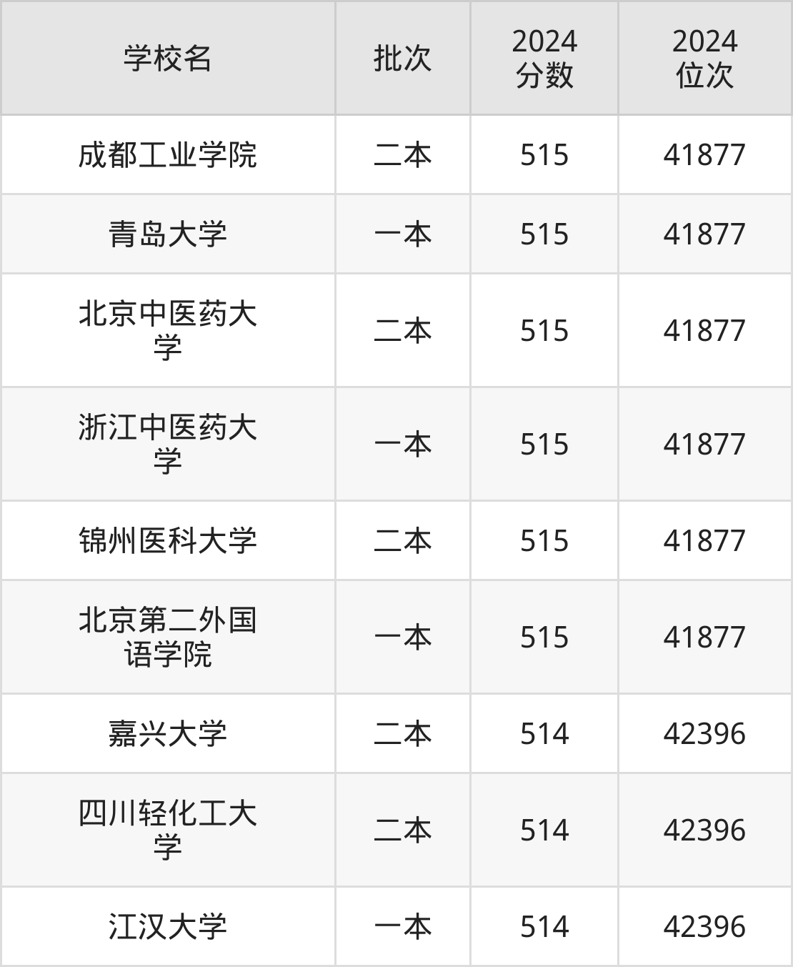 这些都是2025年高考理科41878名~42396名考生可以报考的大学,更多学校名单如下表所示: