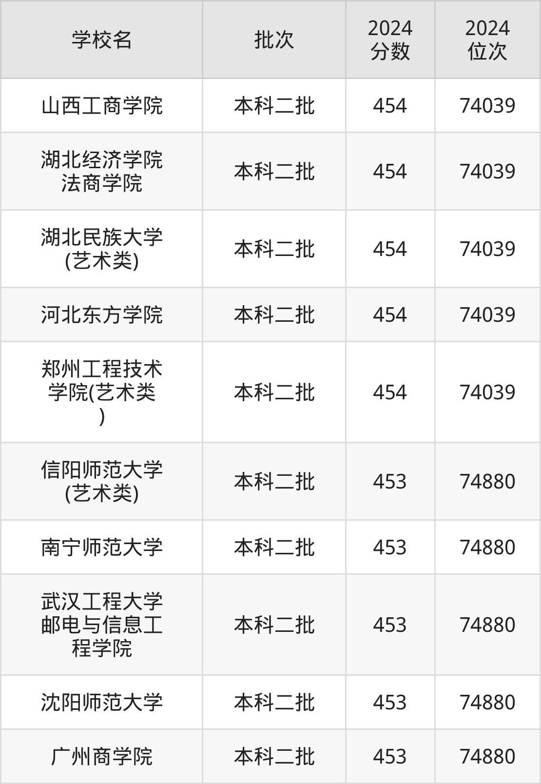 2024年河南高考文科453分(74040名~74880名)能上的大学有沈阳师范大学、南宁师范大学、广州商学院、武汉工程大学邮电与信息工程学院等。