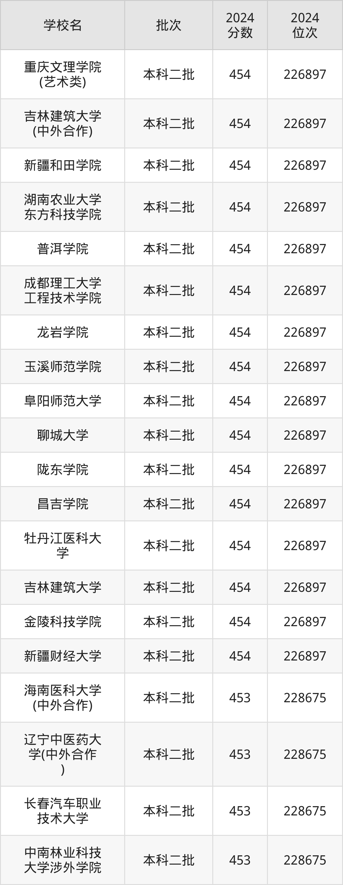 这些都是2025年高考理科226898名~228675名考生可以报考的大学,更多学校名单如下表所示: