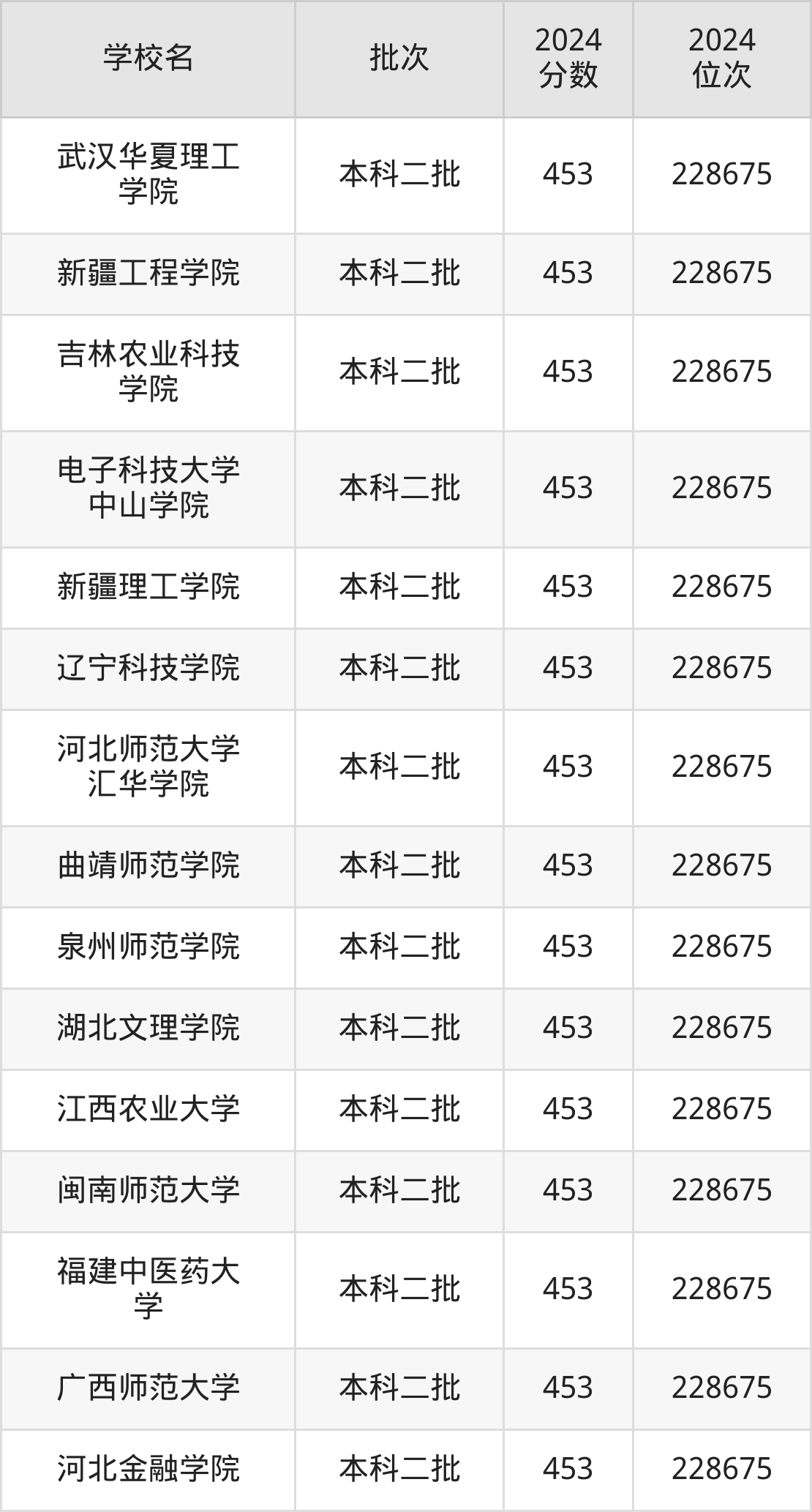 2024年河南高考理科453分(226898名~228675名)能上的大学有河北金融学院、广西师范大学、福建中医药大学、闽南师范大学等。