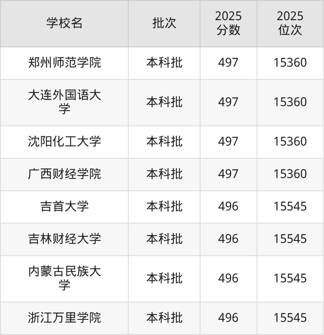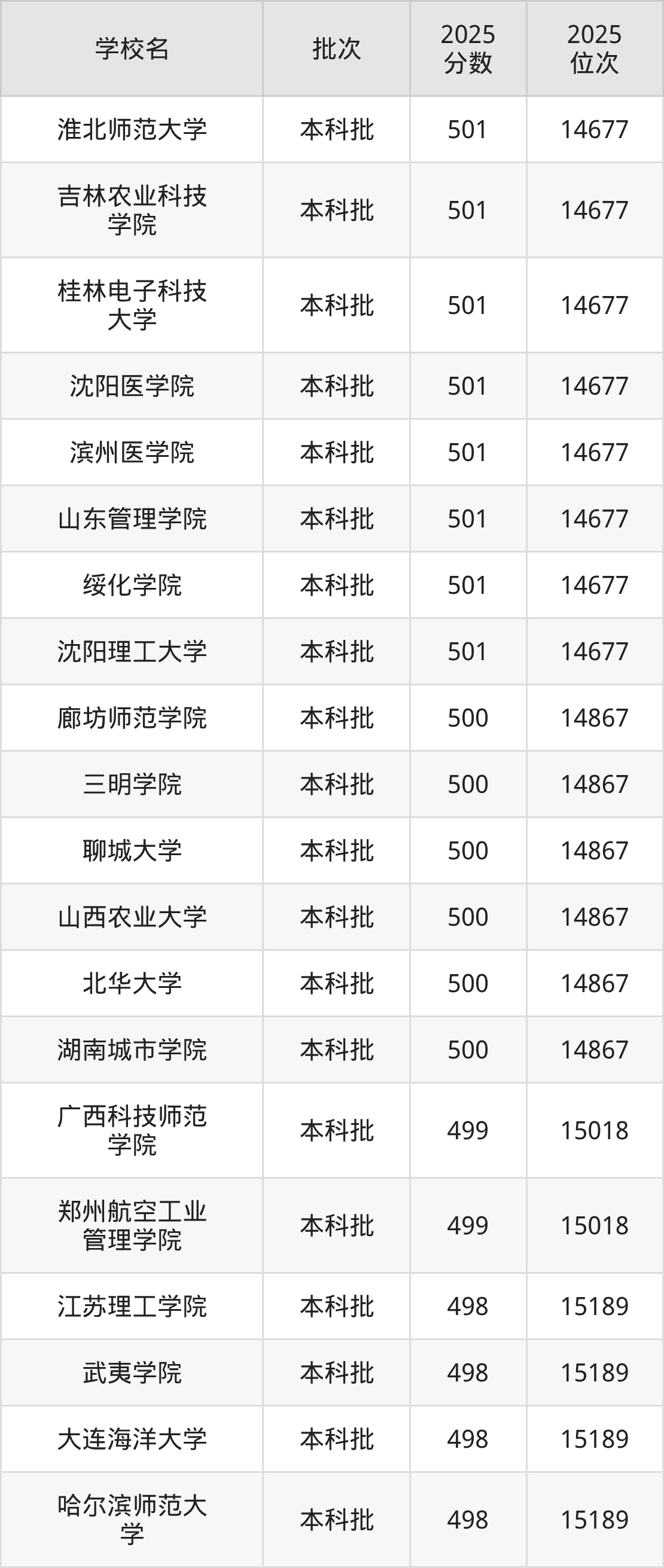 2025年辽宁高考历史类498分(15019名~15189名)能上的大学有哈尔滨师范大学、江苏理工学院、大连海洋大学、武夷学院。