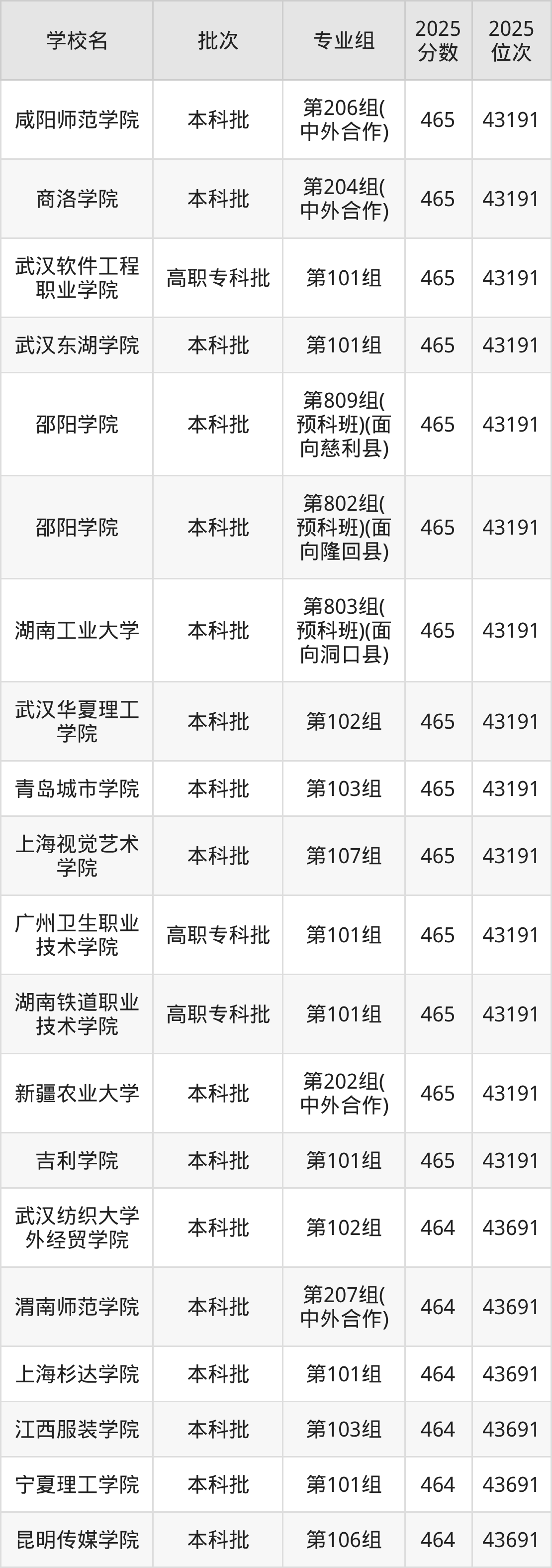这些都是2026年高考历史类43192名~43691名考生可以报考的大学,更多学校名单如下表所示: