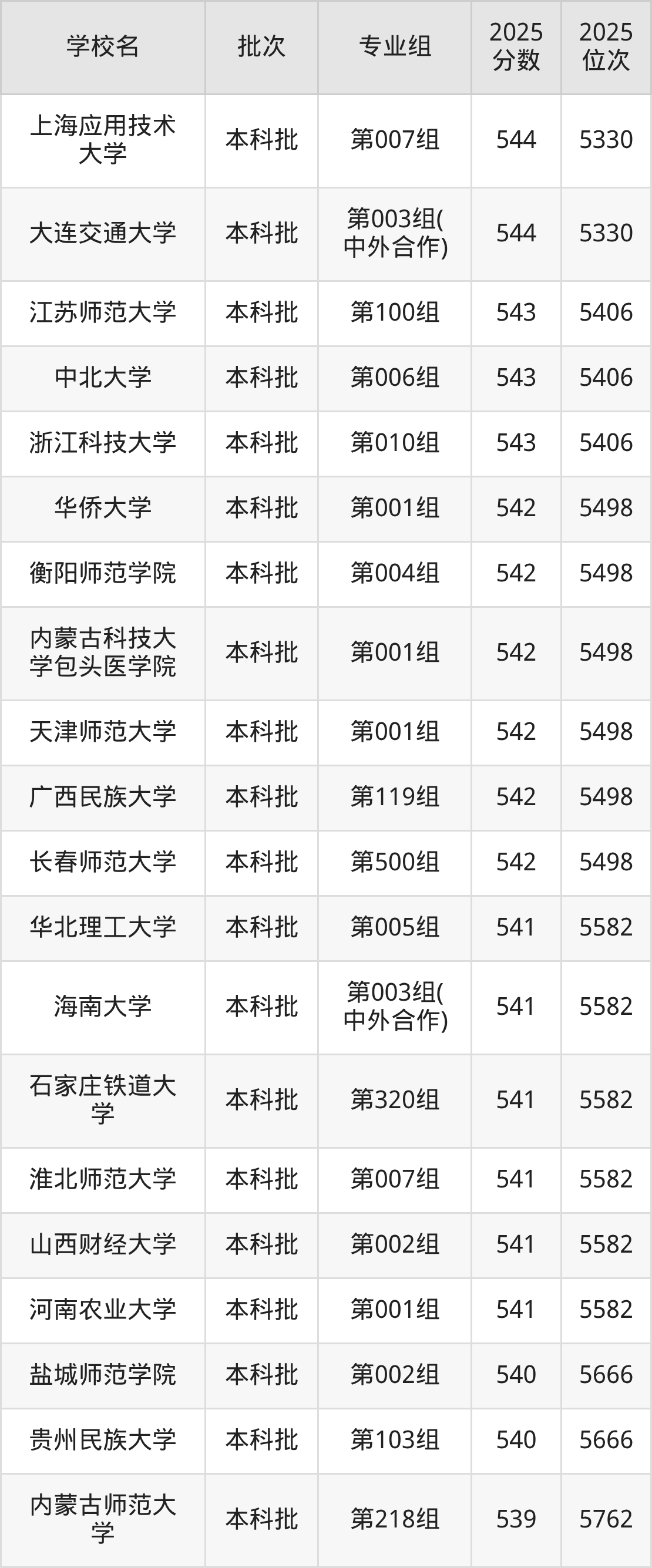 2025年内蒙古高考物理类540分(18583名~18825名)能上的大学有重庆科技大学第002组、滨州医学院第007组、福建医科大学第001组、长春大学第003组等。