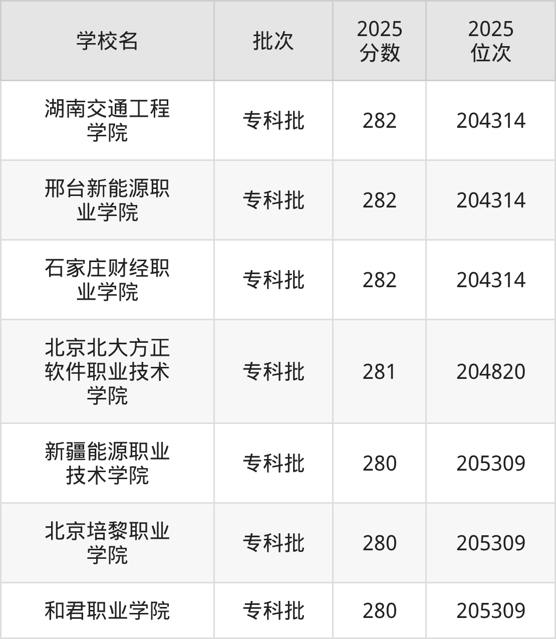 2025年河北高考历史类281分(204315名~204820名)能上的大学有北京北大方正软件职业技术学院。