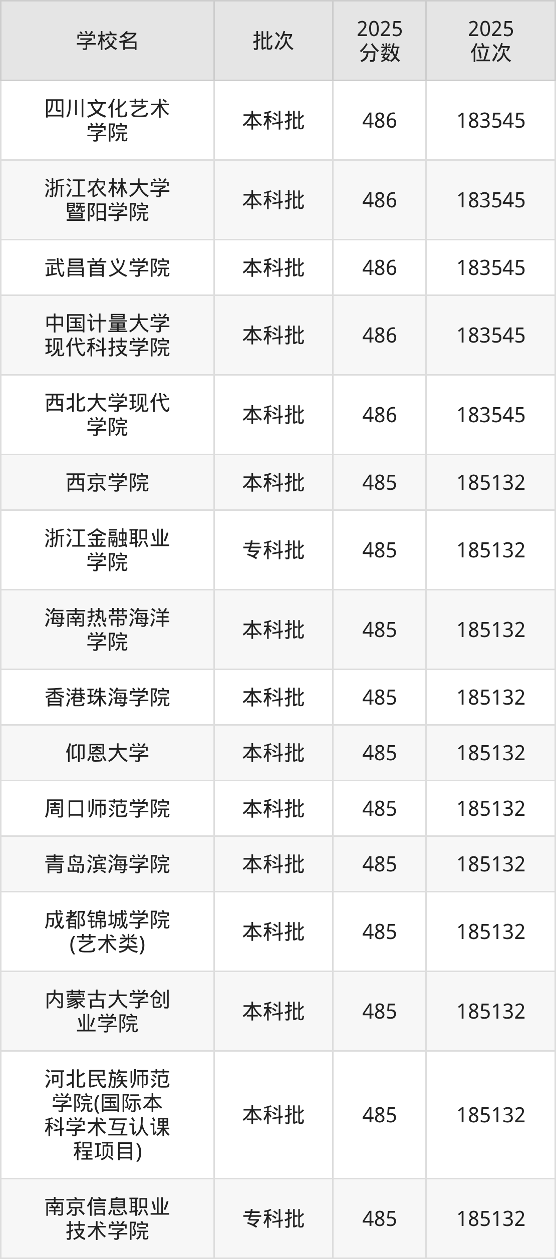 2025年河北高考物理类485分(183546名~185132名)能上的大学有海南热带海洋学院、香港珠海学院、仰恩大学、浙江金融职业学院等。