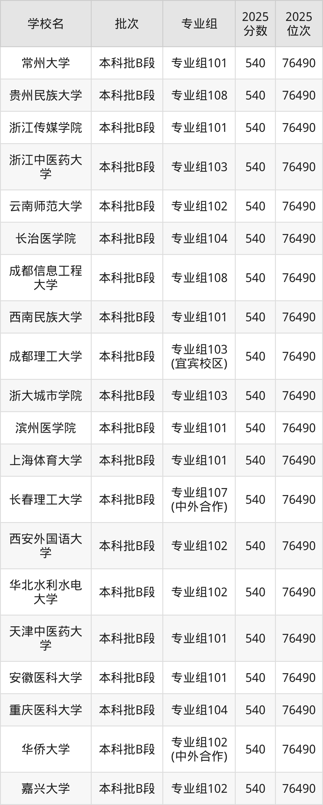 这些都是2026年高考物理类76491名~77689名考生可以报考的大学,更多学校名单如下表所示: