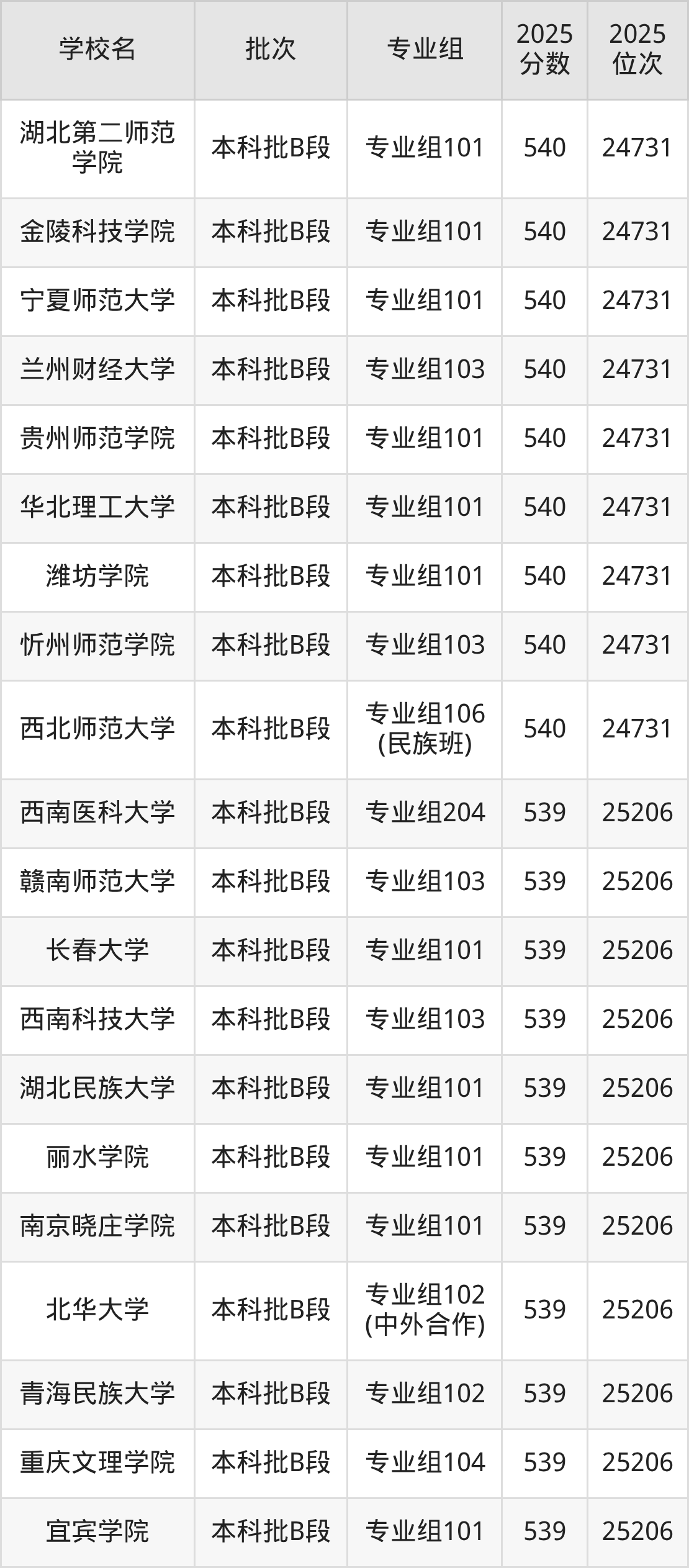 四川高考539分:历史类排名25206位、物理类排名77689位。该分数位次对应能上的大学历史类有赣南师范大学专业组103、新疆师范大学专业组103;物理类有山东中医药大学专业组101、河北科技大学专业组105,更多名单如下文所示,2026届考生可参考。