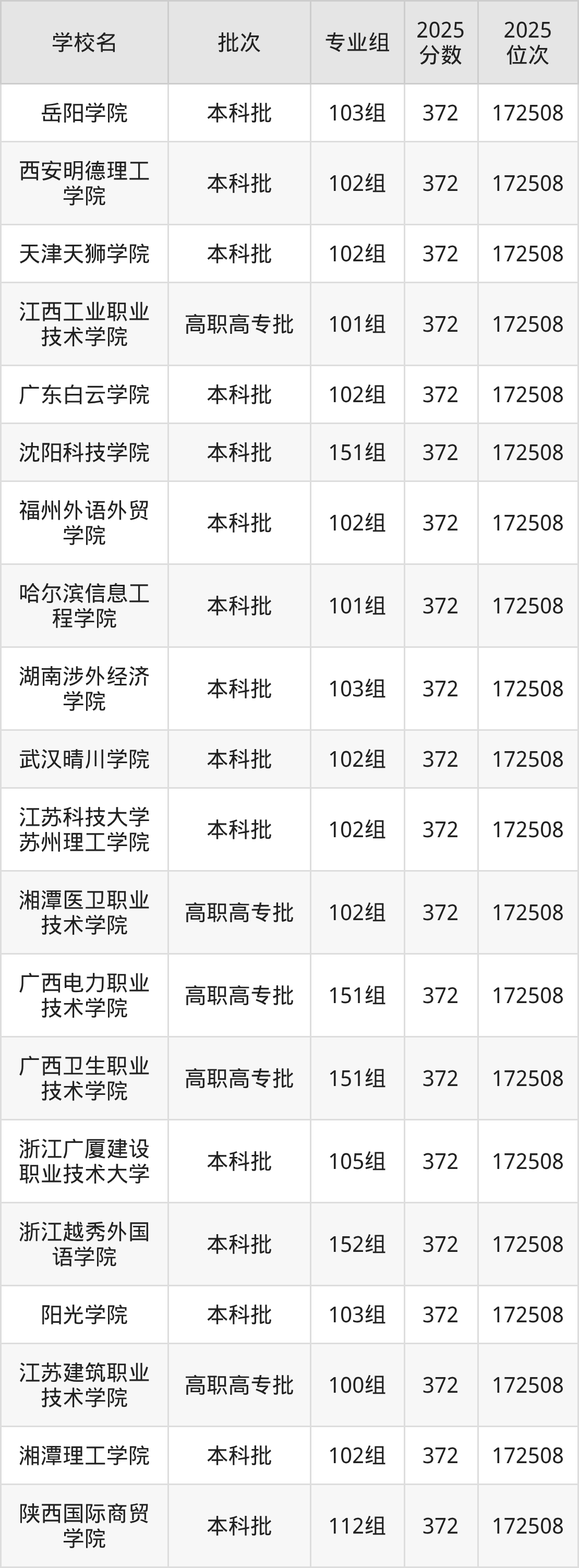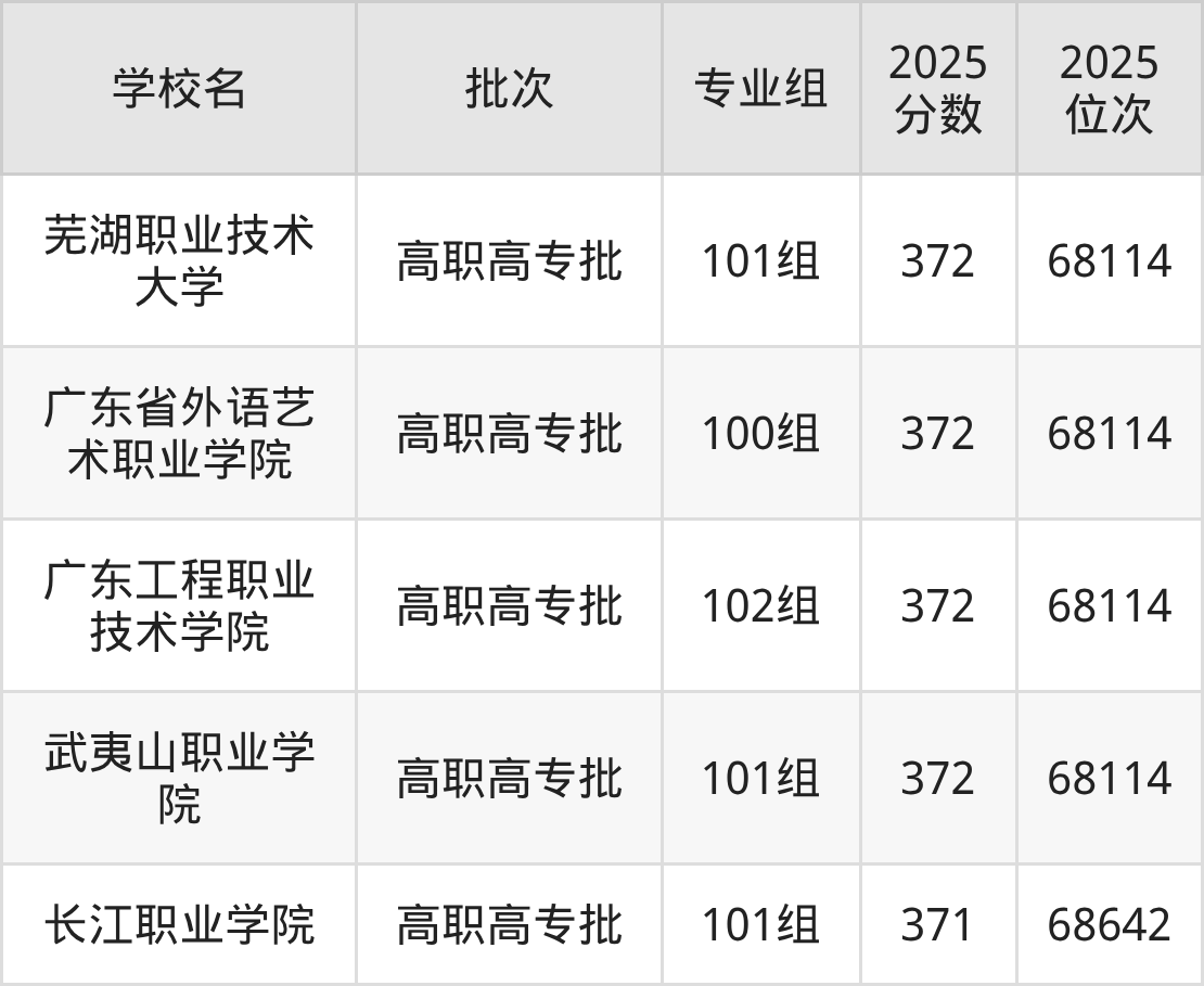 2025年广西高考历史类371分(68115名~68642名)能上的大学有长江职业学院101组。