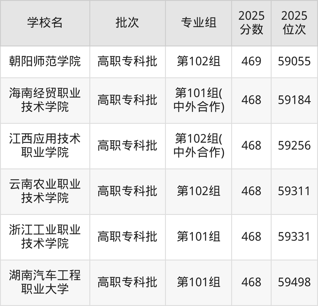 这些都是2026年高考历史类58427名~59079名考生可以报考的大学,更多学校名单如下表所示: