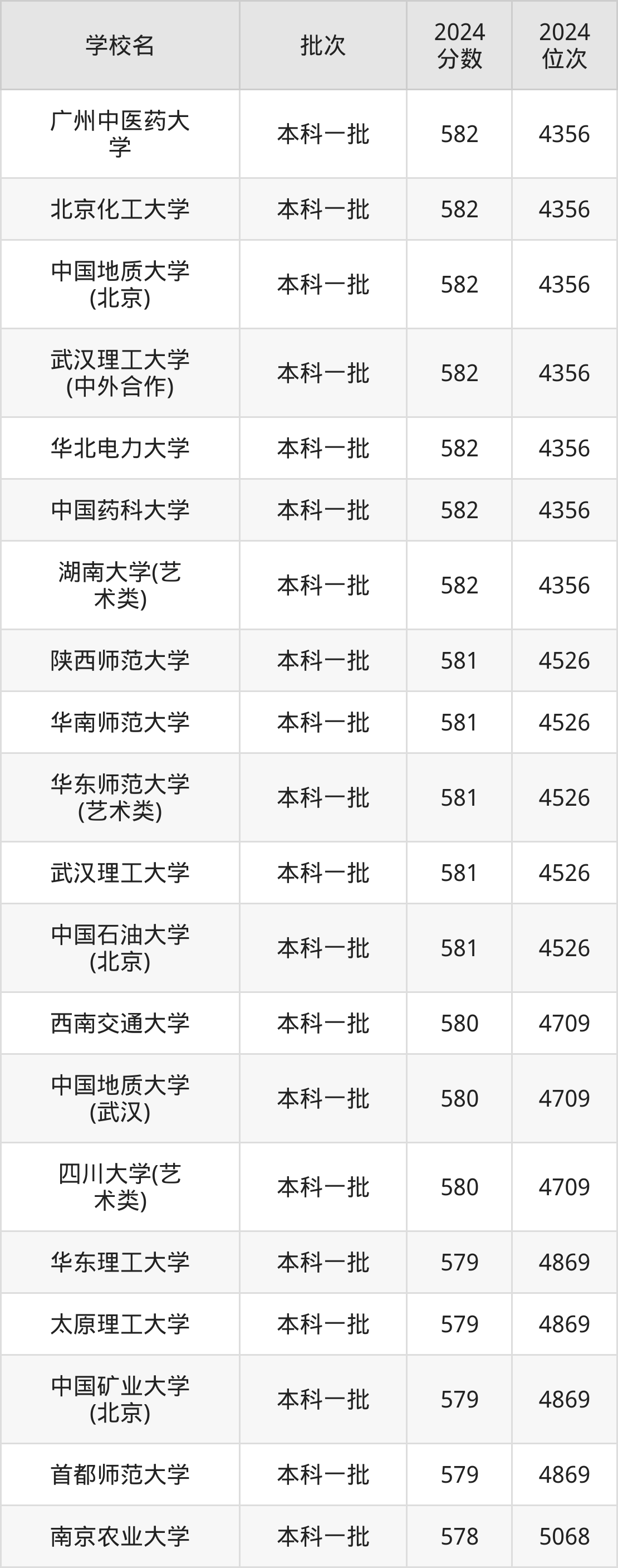 由于高考录取分数线历年波动较大,因此本文以该分数对应的位次排名为大家整理能上的大学名单。