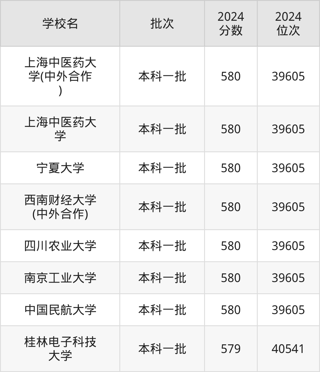 这些都是2025年高考理科39606名~40541名考生可以报考的大学,更多学校名单如下表所示: