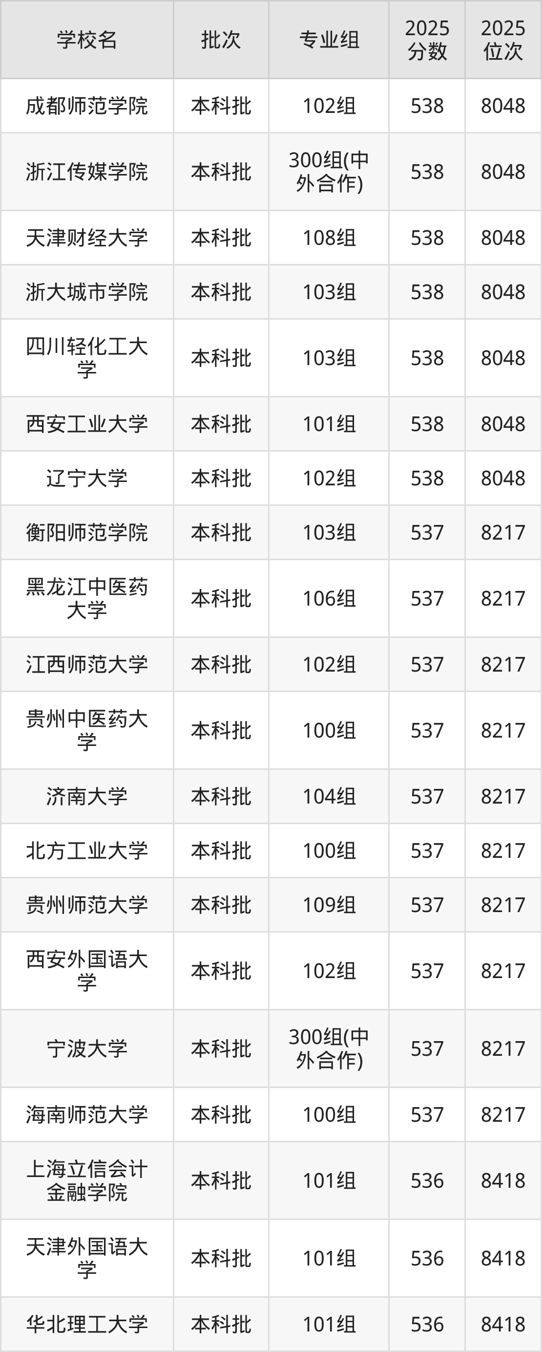 这些都是2026年高考历史类8419名~8591名考生可以报考的大学,更多学校名单如下表所示:
