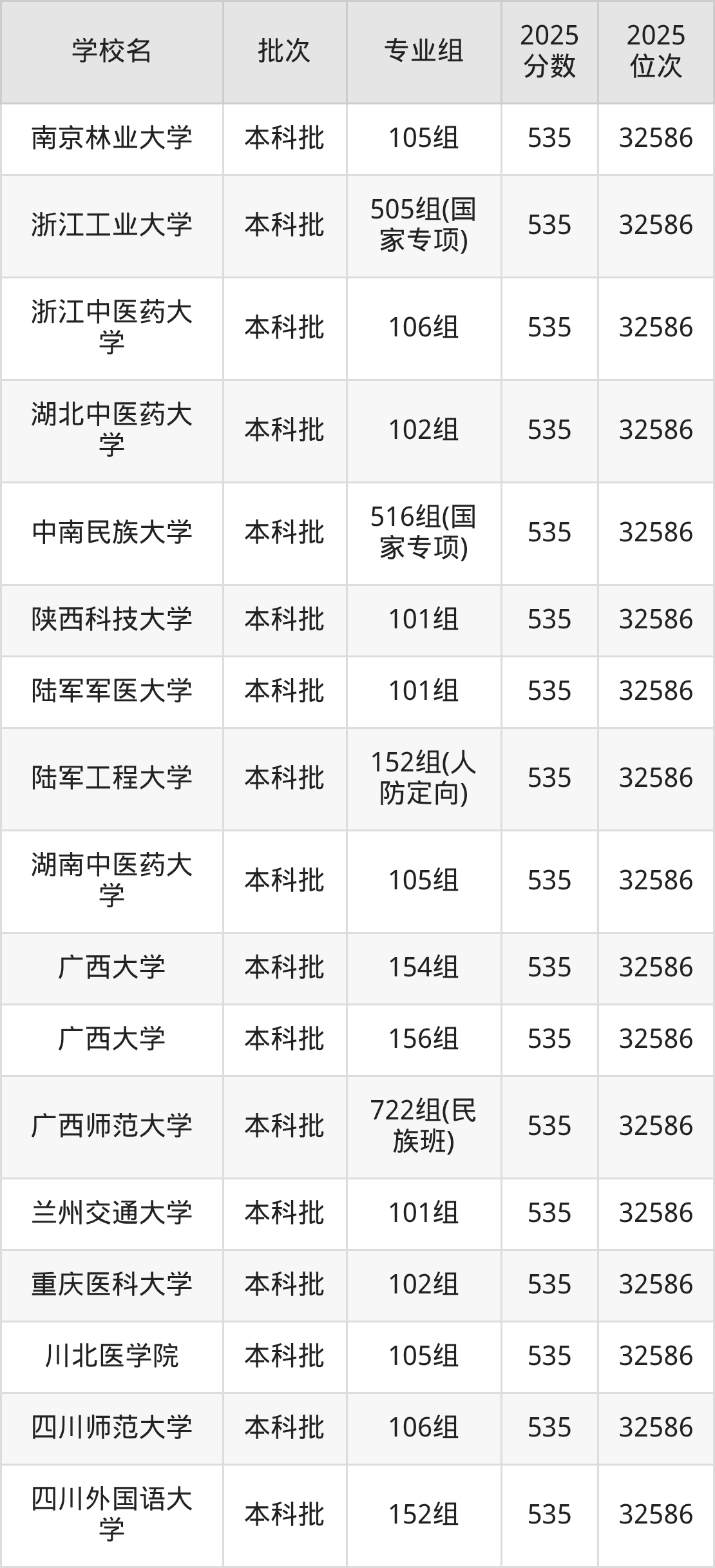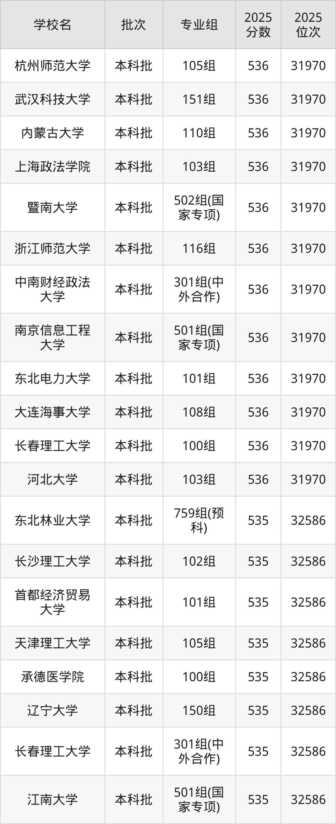 2025年广西高考物理类535分(31971名~32586名)能上的大学有首都经济贸易大学101组、天津理工大学105组、承德医学院100组、辽宁大学150组等。