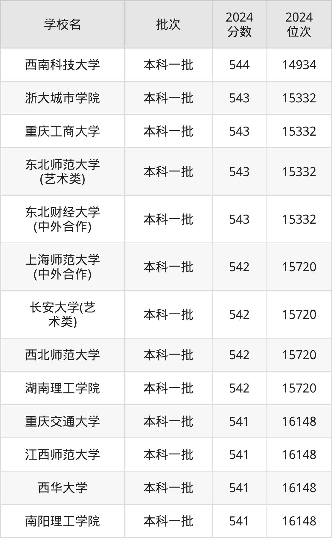 2024年河南高考文科542分(15333名~15720名)能上的大学有西北师范大学、湖南理工学院、上海师范大学(中外合作)、长安大学(艺术类)。