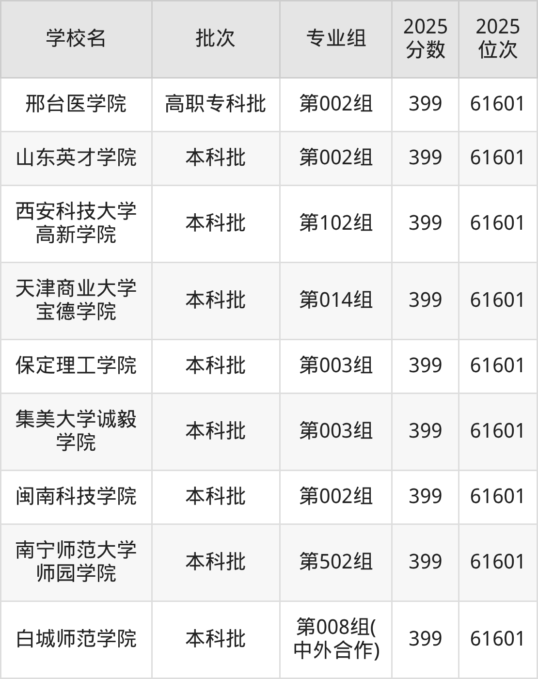 这些都是2026年高考物理类60965名~61271名考生可以报考的大学,更多学校名单如下表所示:
