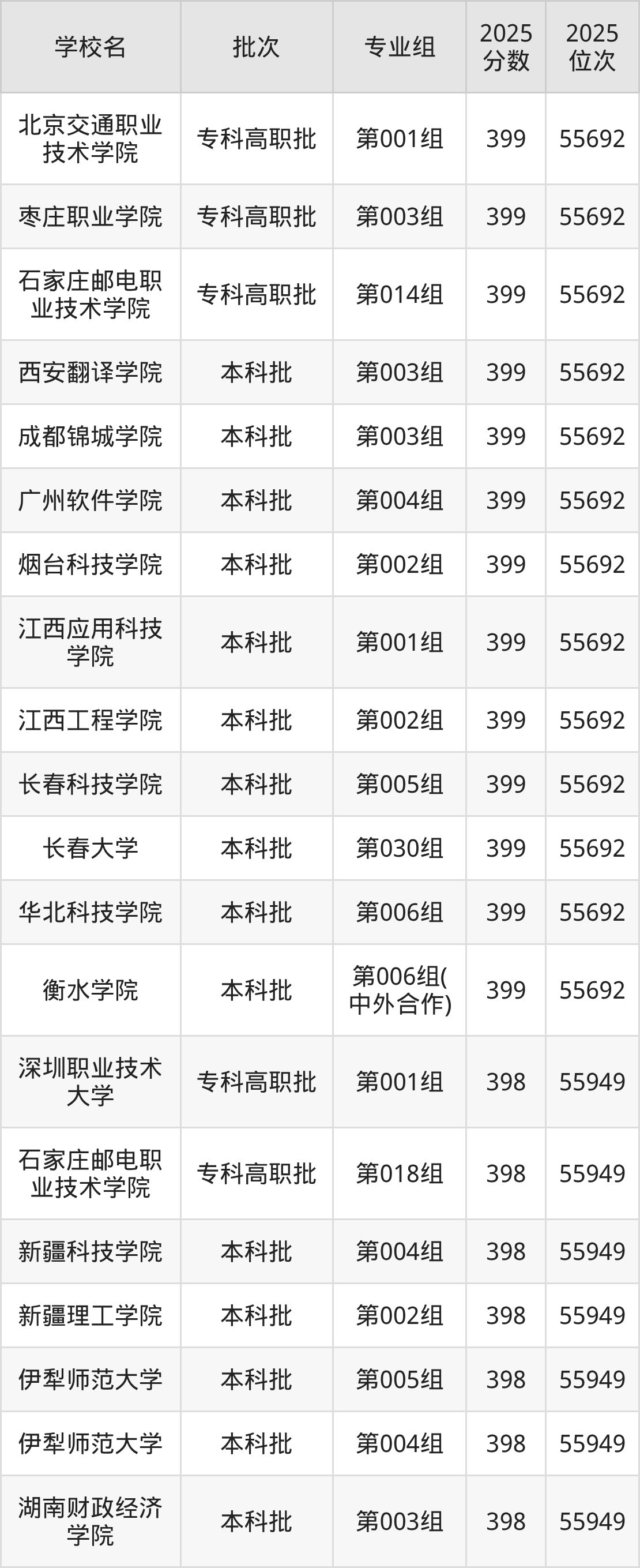 这些都是2026年高考历史类20124名~20235名考生可以报考的大学,更多学校名单如下表所示: