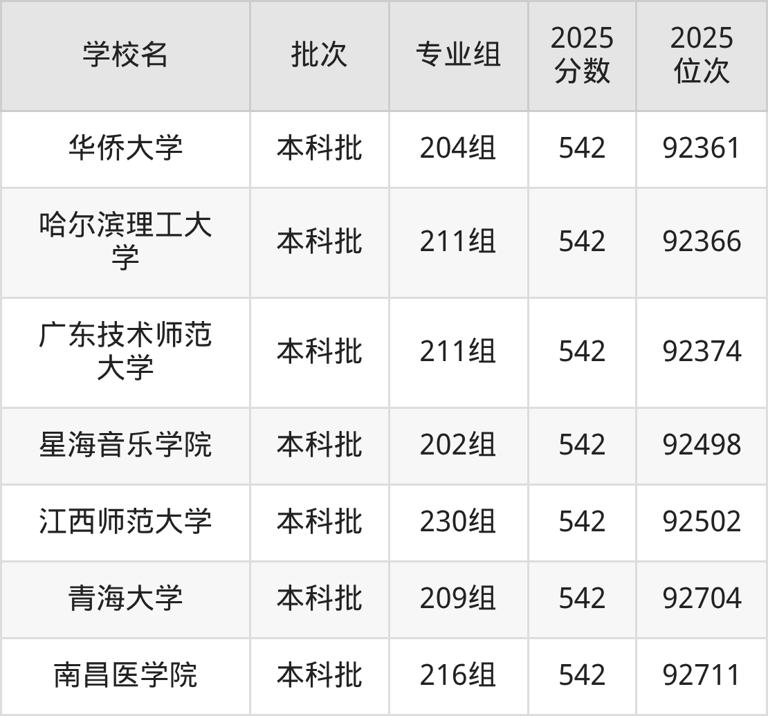 另外录取位次低于该区间(较稳妥)的有广州医科大学206组(地方专项)(92283名)、华侨大学204组(92361名)等;录取位次高于该区间(可冲)的有上海第二工业大学208组(90651名)、中南民族大学213组(90648名)等。