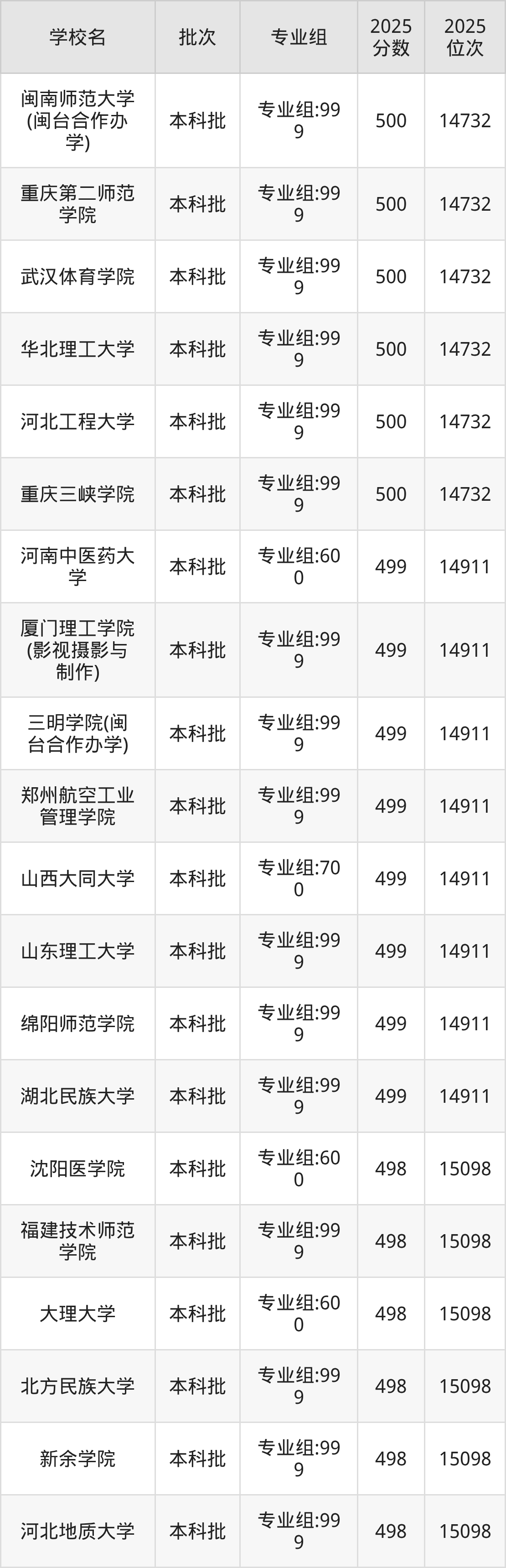 这些都是2026年高考历史类15099名~15286名考生可以报考的大学,更多学校名单如下表所示: