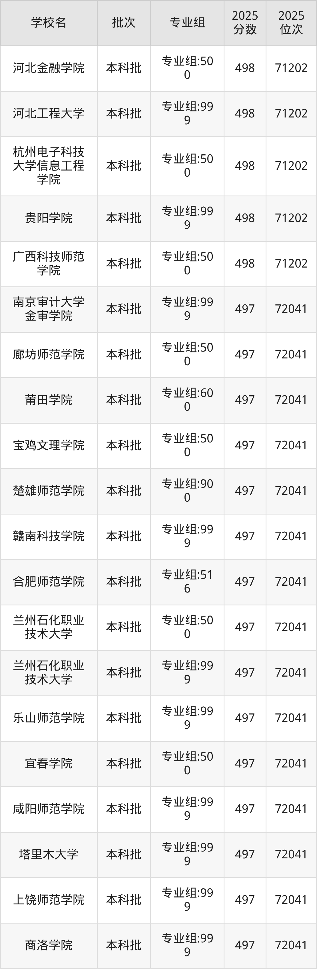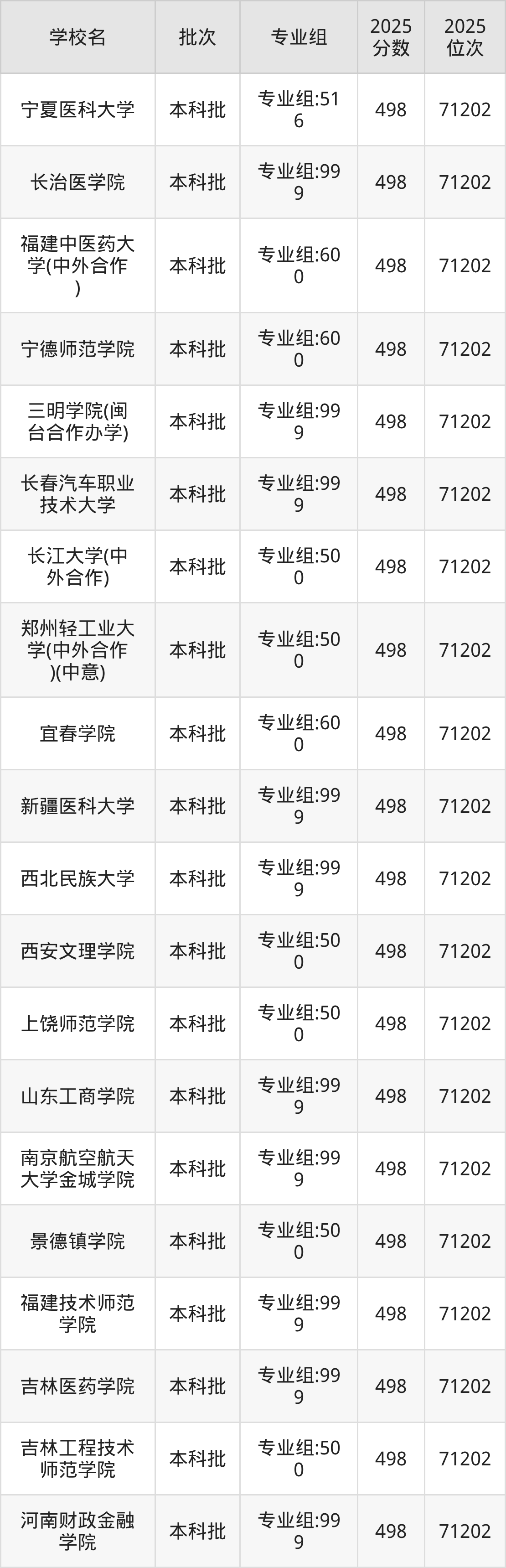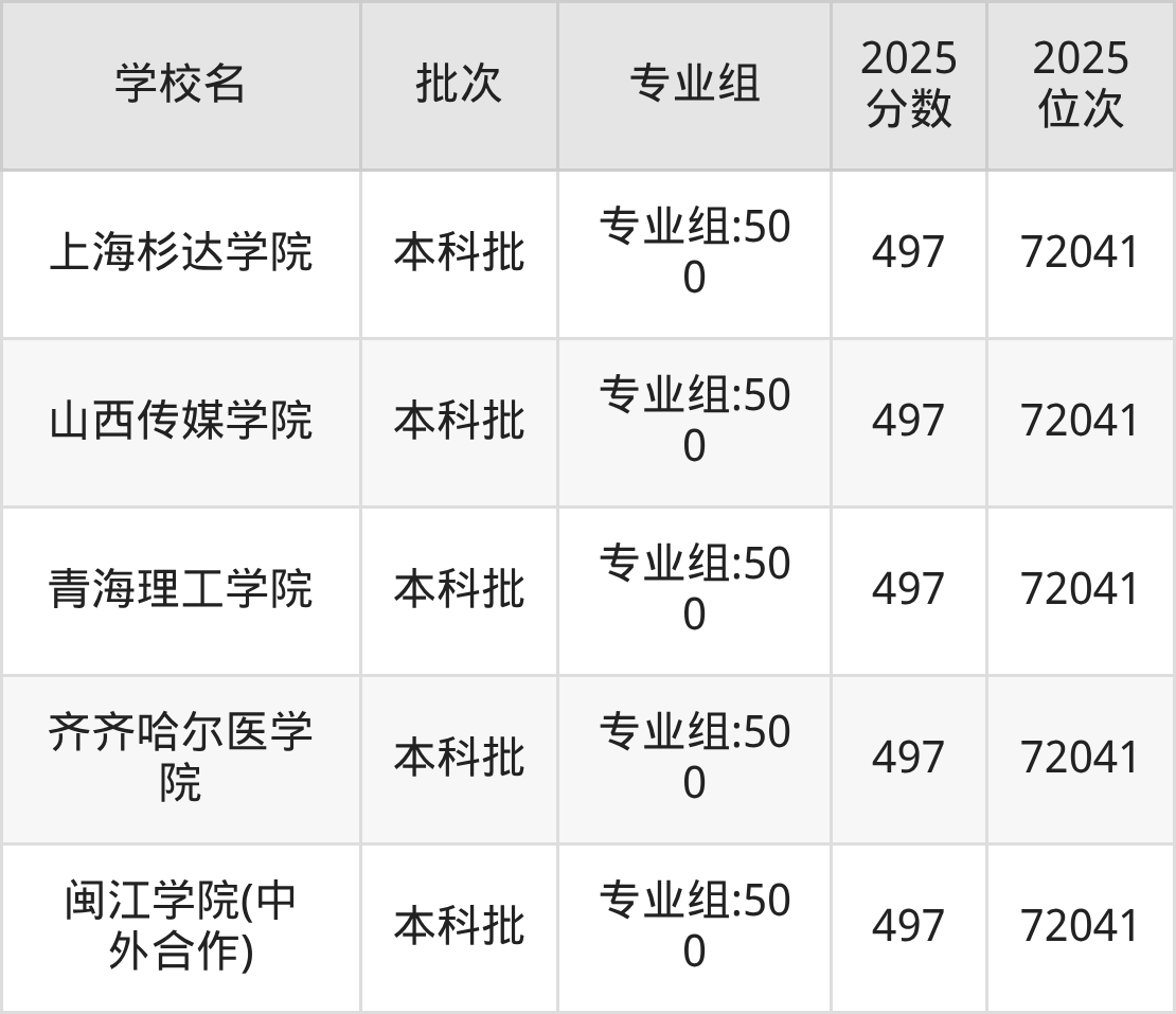 这些都是2026年高考物理类71203名~72041名考生可以报考的大学,更多学校名单如下表所示: