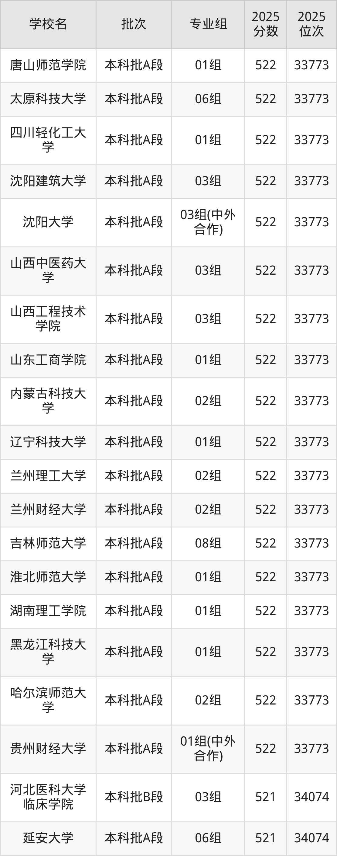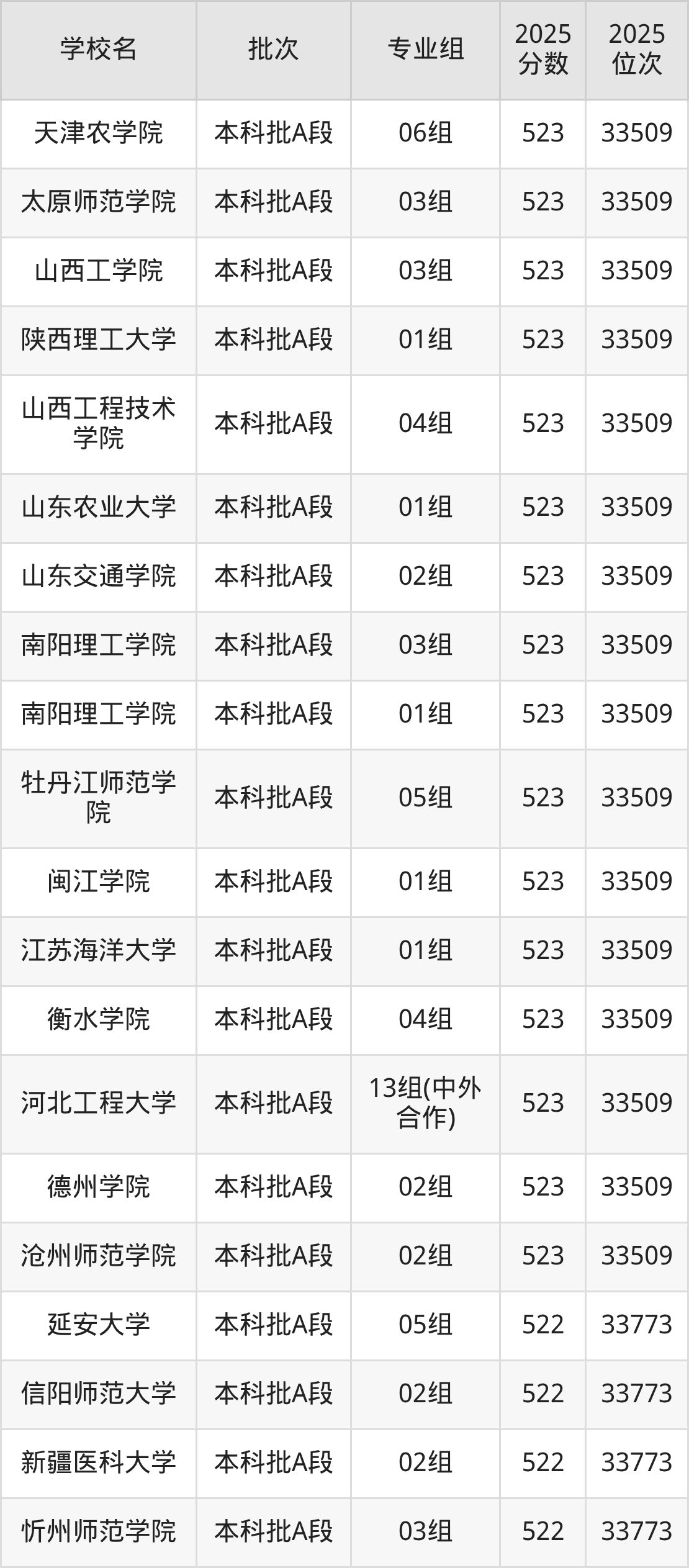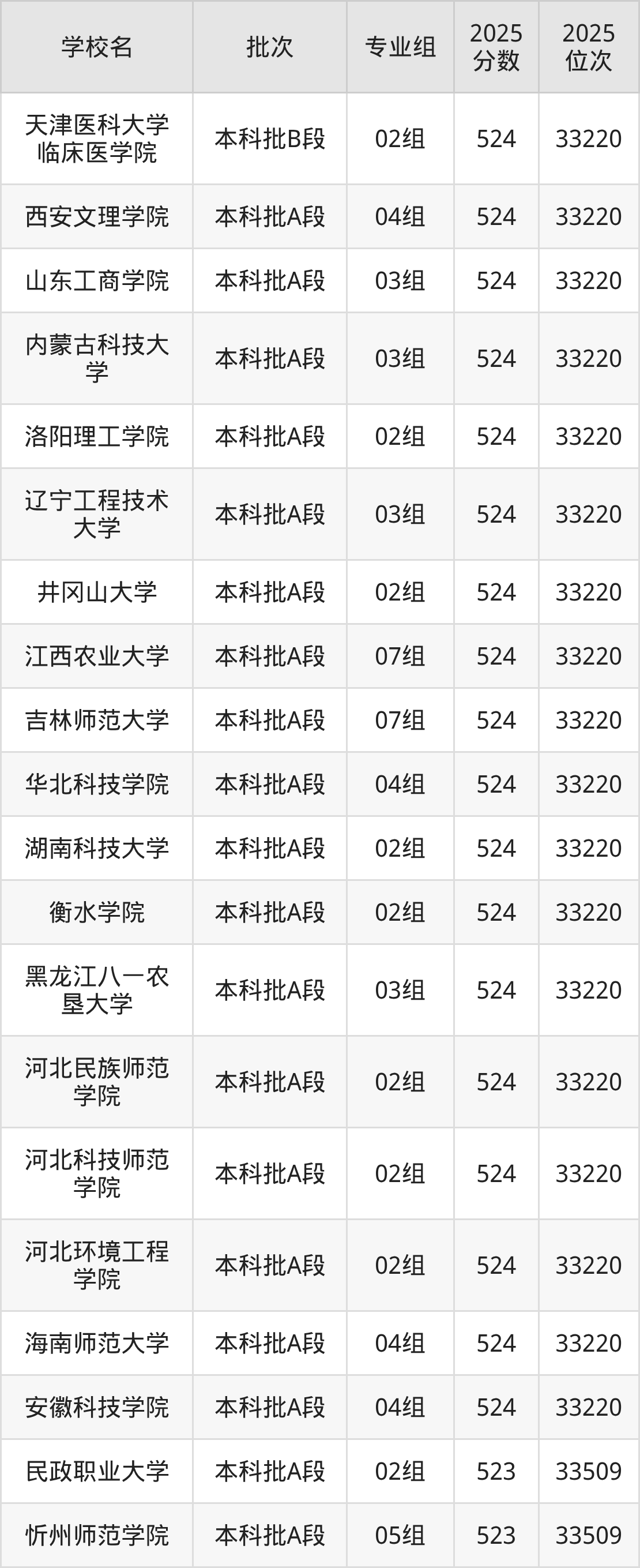 这些都是2026年高考33510名~33773名考生可以报考的大学,更多学校名单如下表所示: